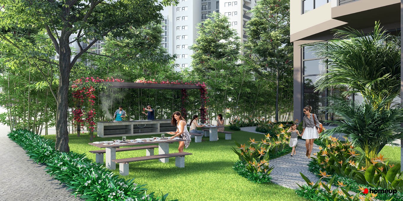 Khu vườn dạo bộ nhiều cây xanh, đem lại cuộc sống trong lành và thoải mái hiếm có Khu vườn cây xanh và hầm để xe thông minh là những tiện ích quan trọng, vừa mang đến không gian thoáng mát, trong lành, vừa đảm bảo nhu cầu để xe an toàn cho hàng trăm phương tiện của cư dân mỗi ngày.