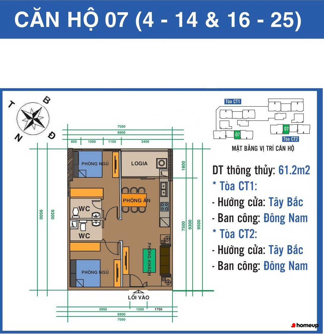 - Tầng 4–14 và 16–25 chủ yếu là căn hộ 2–3 phòng ngủ, diện tích linh hoạt từ 61,5m2 đến 123m2.