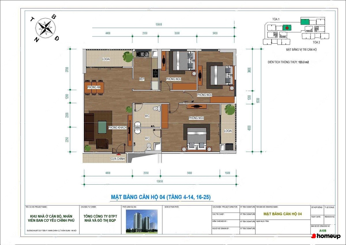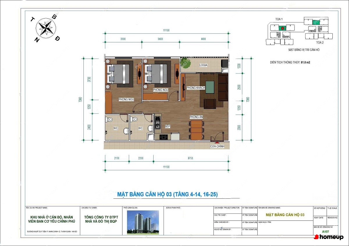 Đơn vị thiết kế:XN Tư vấn Khảo sát Thiết kế thuộc Tổng Công ty Đầu tư Phát triển Nhà và Đô thị Bộ Quốc Phòng (MHDI)