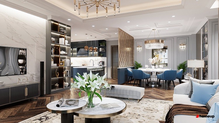 Phòng khách sang trọng tại chung cư BRG Diamond Park Plaza Về bàn giao, căn hộ tại BRG Diamond Park Plaza được trang bị nội thất chất lượng cao, từ sàn gỗ tự nhiên, trần thạch cao, hệ thống chiếu sáng đồng bộ cho đến cửa kính lớn cách âm, cách nhiệt. Khu bếp, phòng tắm đều được lắp đặt đầy đủ thiết bị hiện đại, đảm bảo sự tiện nghi và sang trọng. Cư dân khi nhận nhà gần như có thể dọn vào ở ngay mà không cần đầu tư nhiều cho cải tạo.