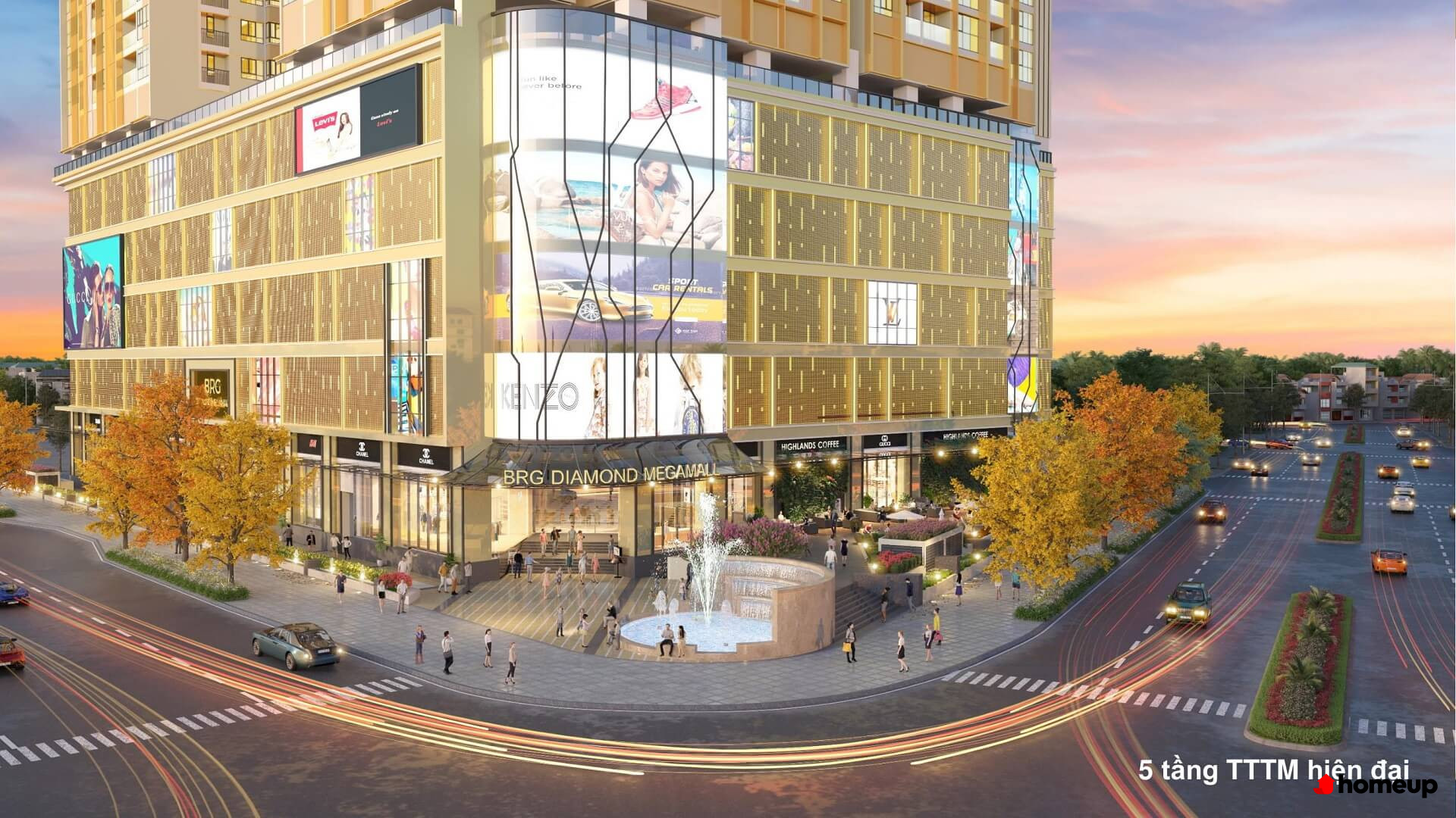 Từ tầng 1 đến 5 của dự án BRG Diamond Residence là trung tâm thương mại sầm uất, siêu thị, quán cafe, nhà hàng,... đáp ứng nhu cầu mua sắm và giải trí ngay trong tòa nhà.