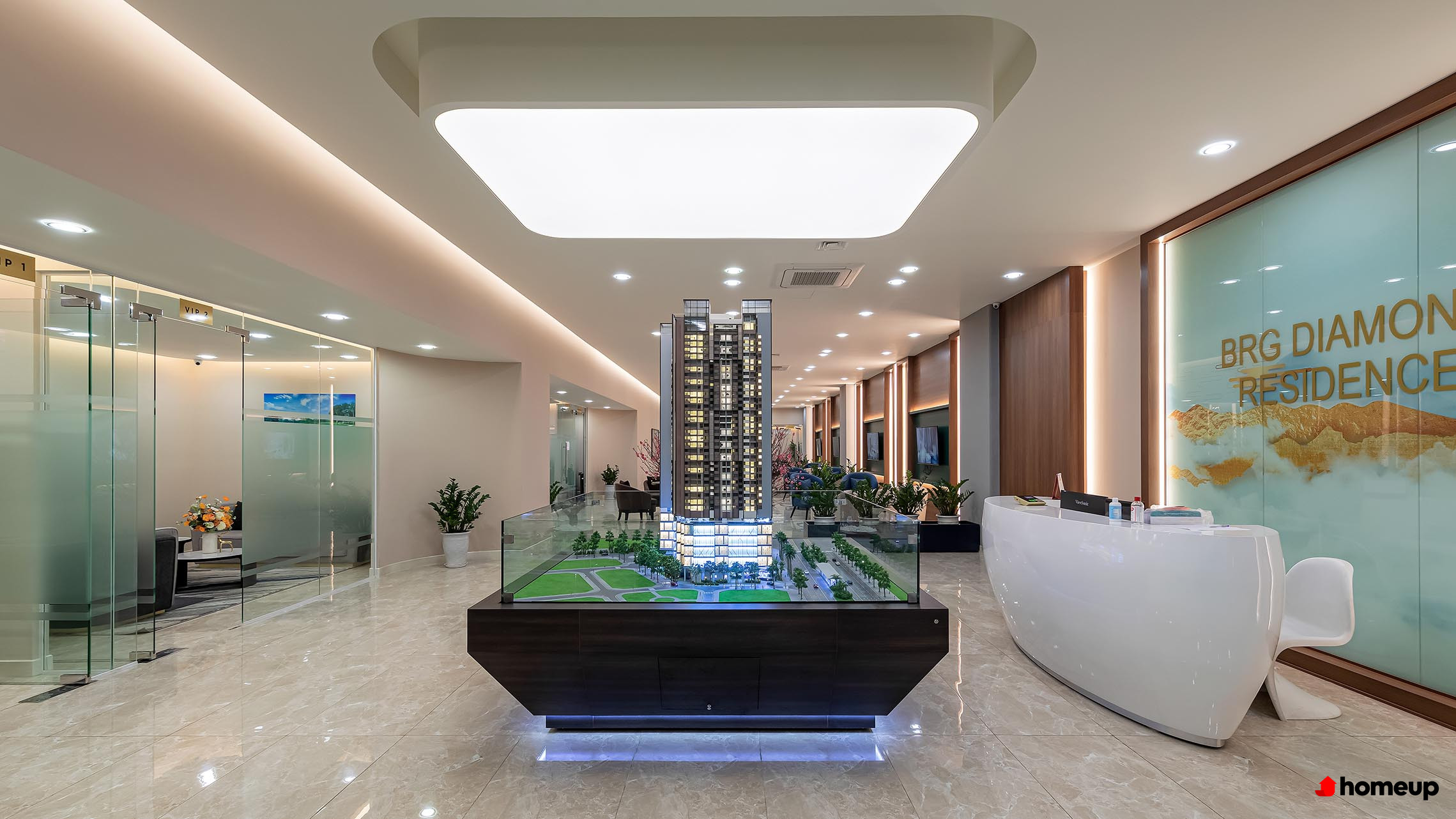 Sảnh văn phòng chung cư BRG Diamond Residence Dự án được thiết kế theo phong cách châu Âu hiện đại, kết hợp tinh tế giữa đường nét kiến trúc và yếu tố xanh. Mỗi căn hộ đều sở hữu mặt thoáng lớn, tận dụng tối đa ánh sáng tự nhiên và tầm nhìn rộng mở ra thành phố. Không gian sống riêng tư, yên tĩnh nhờ thiết kế giới hạn số căn trên mỗi tầng, tòa nhà trở thành lựa chọn lý tưởng cho những ai đang tìm kiếm một không gian sống đẳng cấp, tiện nghi nhưng vẫn biệt lập và an yên giữa trung tâm thủ đô.