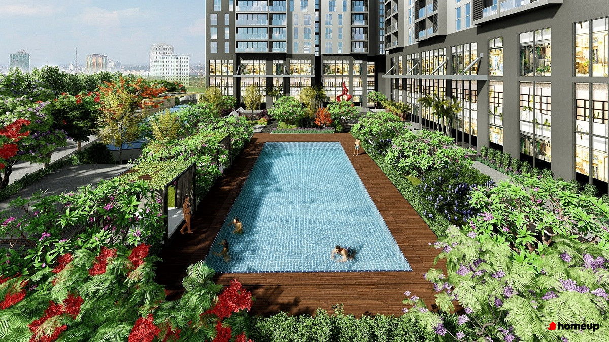 Dự án chú trọng khu vui chơi ngoài trời cho bé có sàn cao su chống trơn trượt Toàn bộ cảnh quan nội khu được phủ xanh với vườn dạo bộ, chòi nghỉ, thảm cỏ và lối đi bộ nội bộ, tạo nên một không gian sống trong lành giữa lòng thành phố. Hệ thống thang máy tốc độ cao, an ninh 3 lớp và máy phát điện dự phòng 100% cũng đảm bảo vận hành liên tục, an toàn cho toàn bộ tòa nhà.