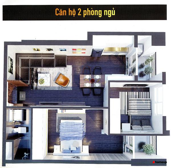 Căn hộ 2 phòng ngủ: 59,78m2 - 60,14m2 - 63,84m2 - 69,6m2.
