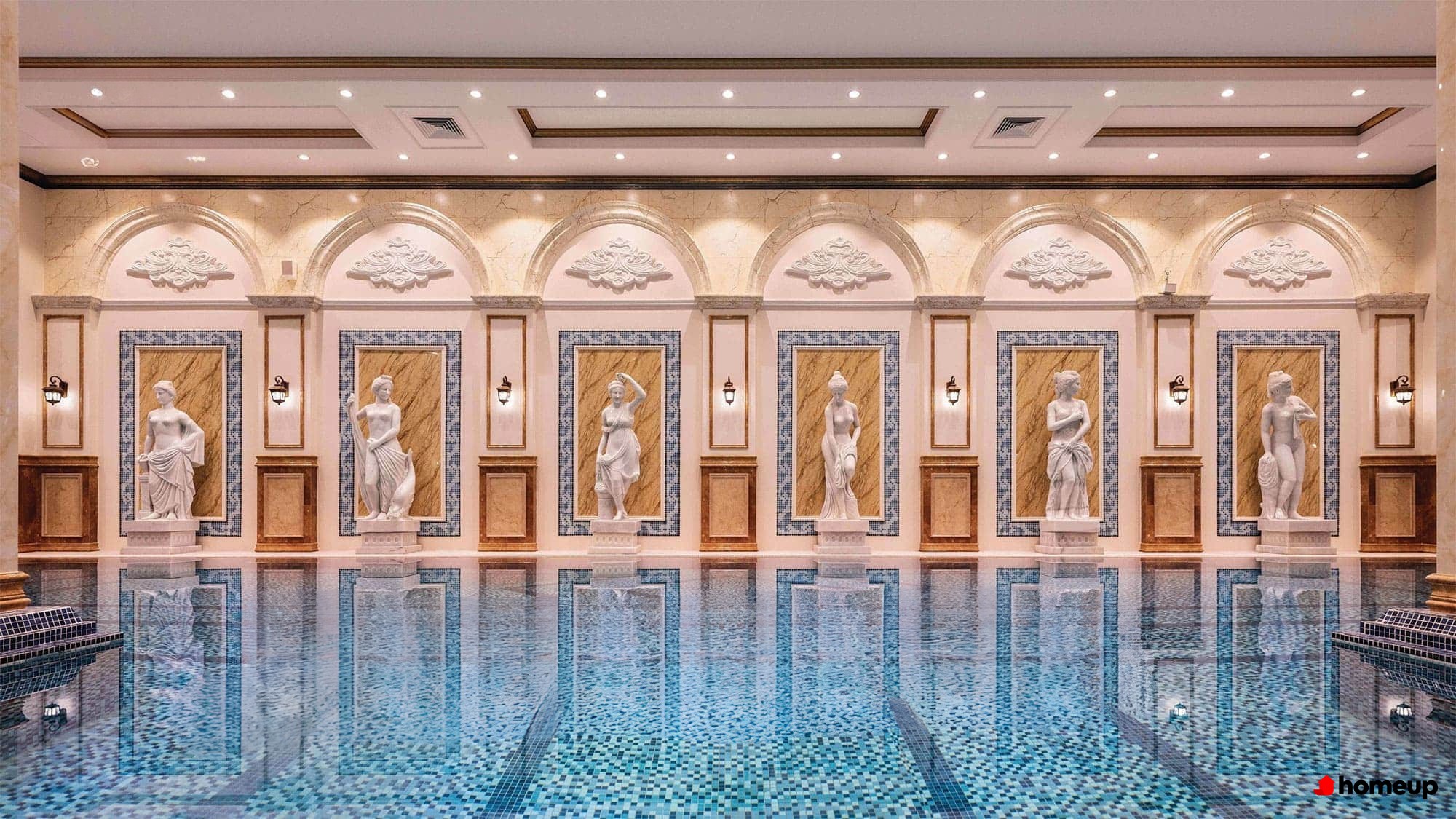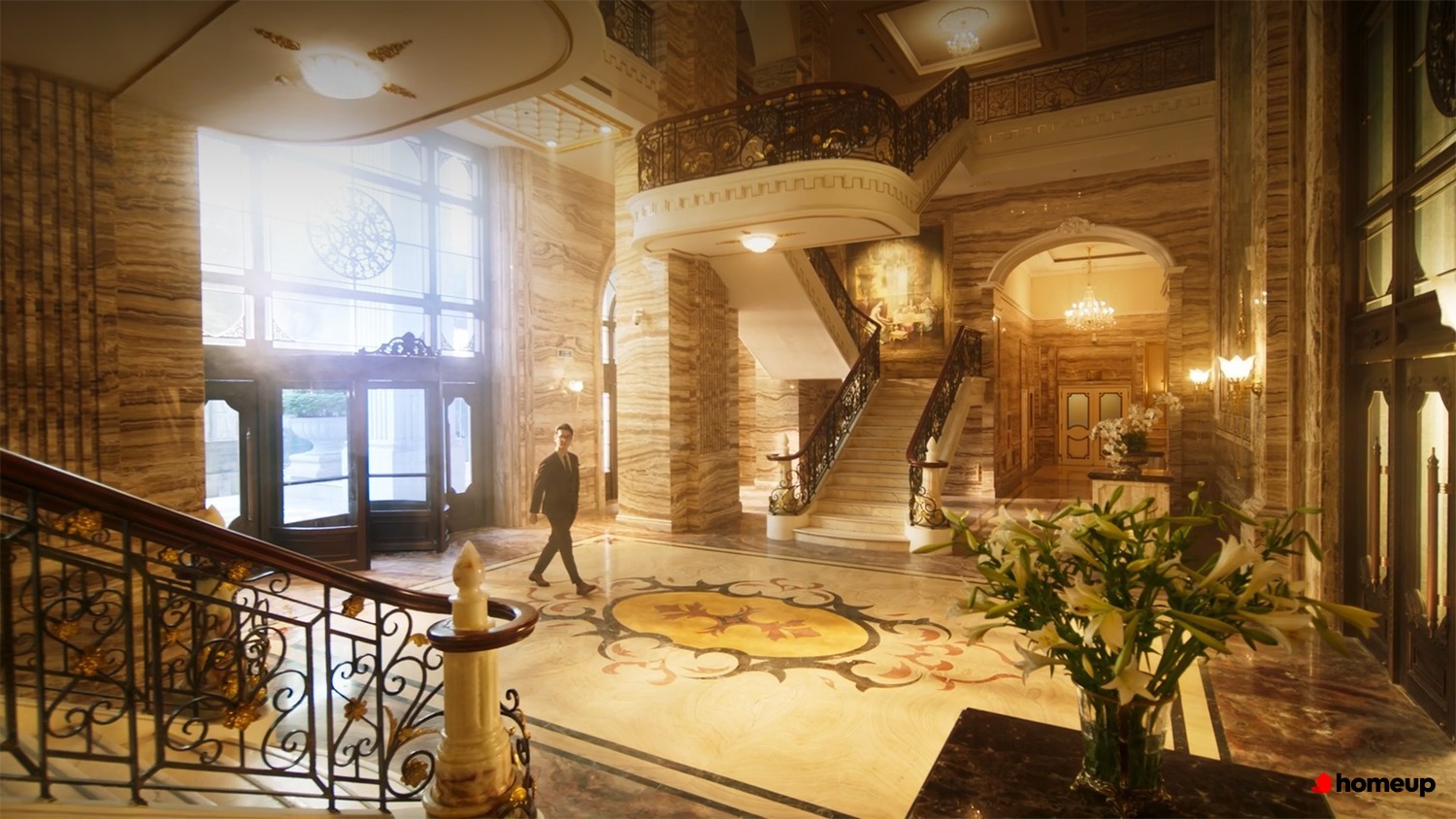 Sảnh đón Signature Grand Hall sang trọng, với phong cách thiết kế Pháp Ý Dự án mang đến trải nghiệm sống chuẩn resort ngay giữa lòng Hà Nội. Trên tầng mái là hai bể bơi bốn mùa riêng biệt cho người lớn và trẻ em, đi kèm khu thư giãn, xông hơi, sky bar và khu BBQ ngoài trời.