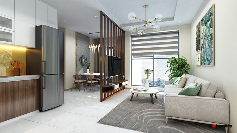 Phòng khách căn hộ thiết kế thoáng mát và thư giãn