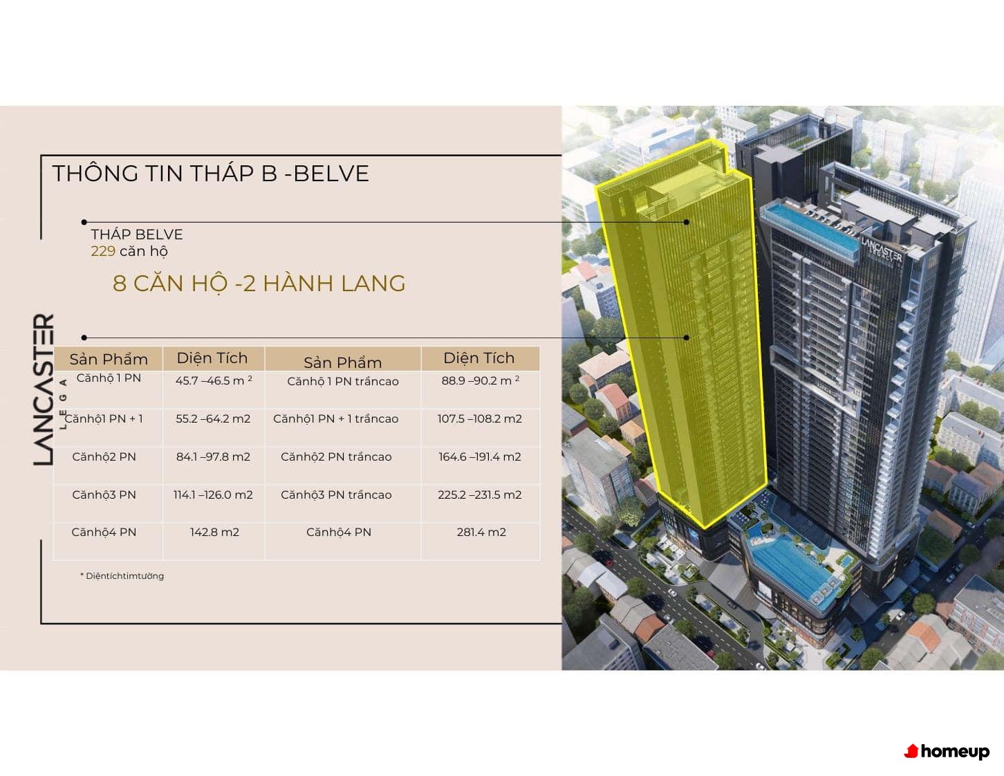 Mặt bằng tổng thể dự án chung cư cao cấp Lancaster Legacy Diện tích đa dạng từ 50m2 đến 150m2, gồm các loại 1-3 phòng ngủ, căn hộ sân vườn, căn hộ thông tầng và penthouse sang trọng. Mỗi chi tiết nội thất đều được lựa chọn kỹ lưỡng với chất liệu cao cấp nhập khẩu từ châu Âu, tạo nên không gian sống thanh lịch, tiện nghi và khác biệt. Dự án cung cấp cả hình thức bàn giao hoàn thiện nội thất và thô, đáp ứng đa dạng nhu cầu sử dụng và đầu tư.