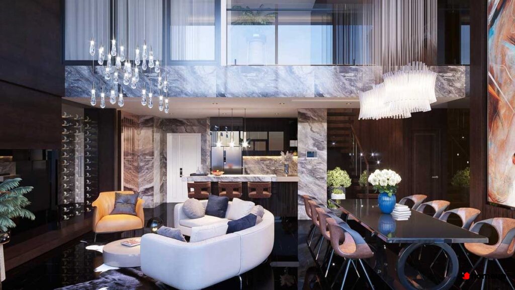 Thiết kế phòng khách căn hộ rộng rãi, có tầm nhìn bao trọn thành phố, tạo tiền đề đáng sống thư giãn Loại căn hộ Lancaster Legacy