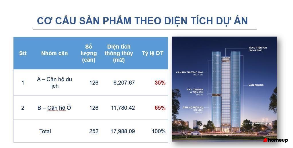 Dự án Lancaster Luminaire gồm 1 tòa tháp cao 25 tầng, 3 tầng hầm, 2 tầng kỹ thuật Các căn hộ tại Lancaster Luminaire được thiết kế tinh tế, chú trọng sự hài hòa giữa công năng và thẩm mỹ. Tất cả đều có ban công rộng, đón trọn ánh sáng và gió tự nhiên, tạo nên không gian sống thoáng đãng và trong lành. Đa dạng diện tích từ 48,38 m2 dến 157,6m2, bố trí từ 1 đến 4 phòng ngủ, phù hợp cho nhiều nhu cầu từ gia đình trẻ, hộ gia đình đa thế hệ đến chuyên gia và nhà đầu tư. Sự kết hợp giữa kiến trúc hiện đại và không gian xanh mang lại cảm giác thư thái, cân bằng giữa nhịp sống đô thị sôi động.