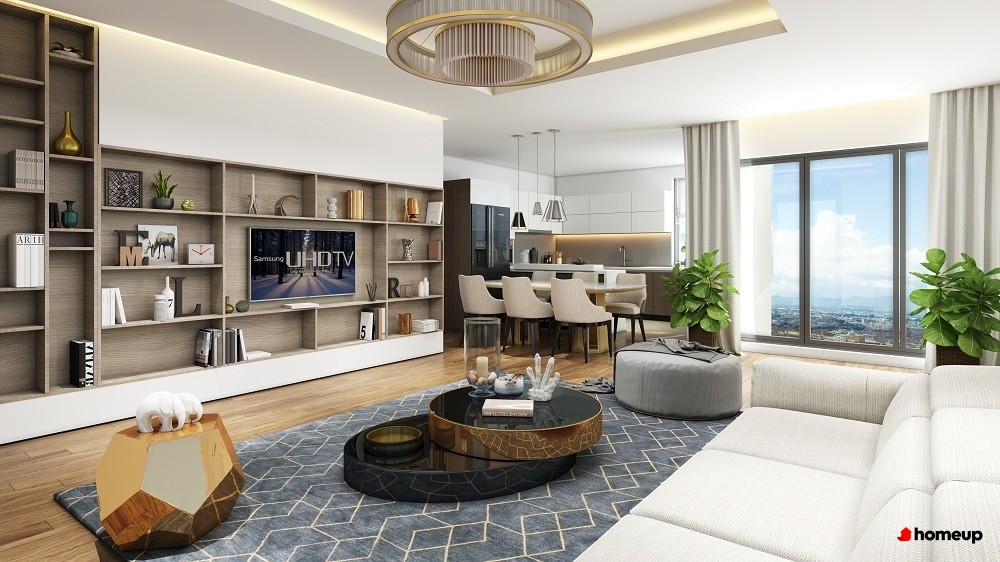 Phòng khách căn hộ thiết kế phong cách châu Âu hiện đại Cụ thể có 3 loại căn hộ chung cư điển hình, chia thành: