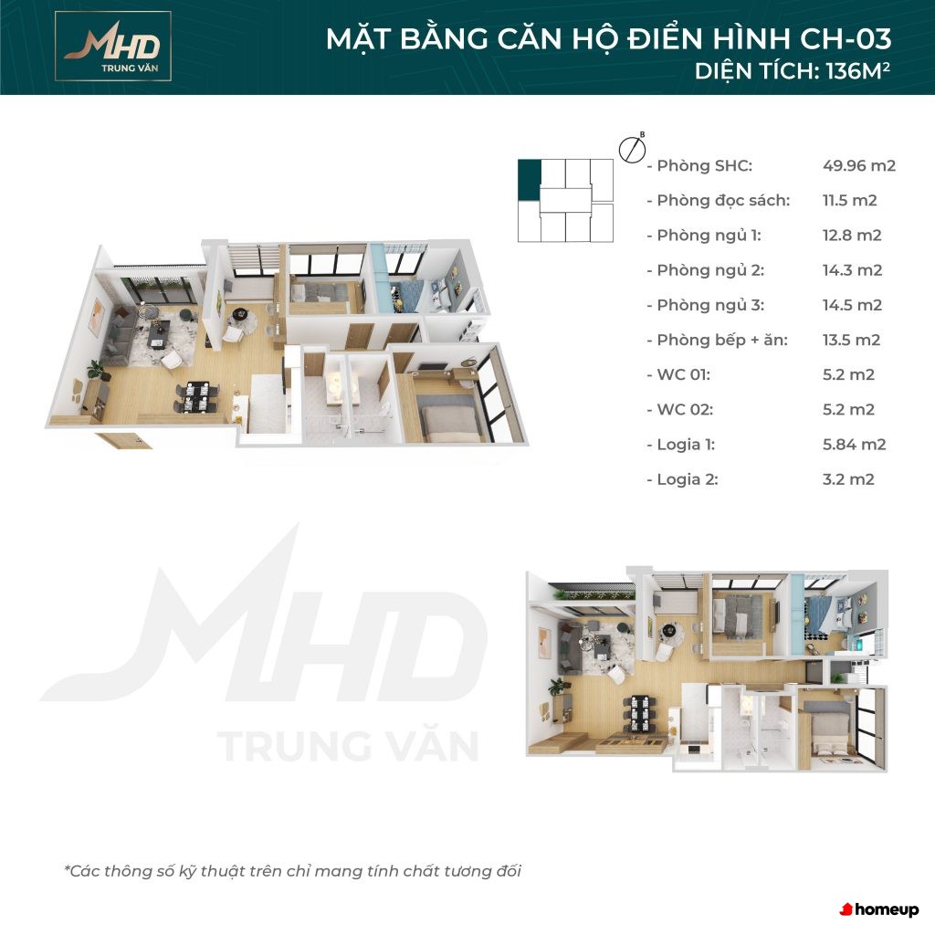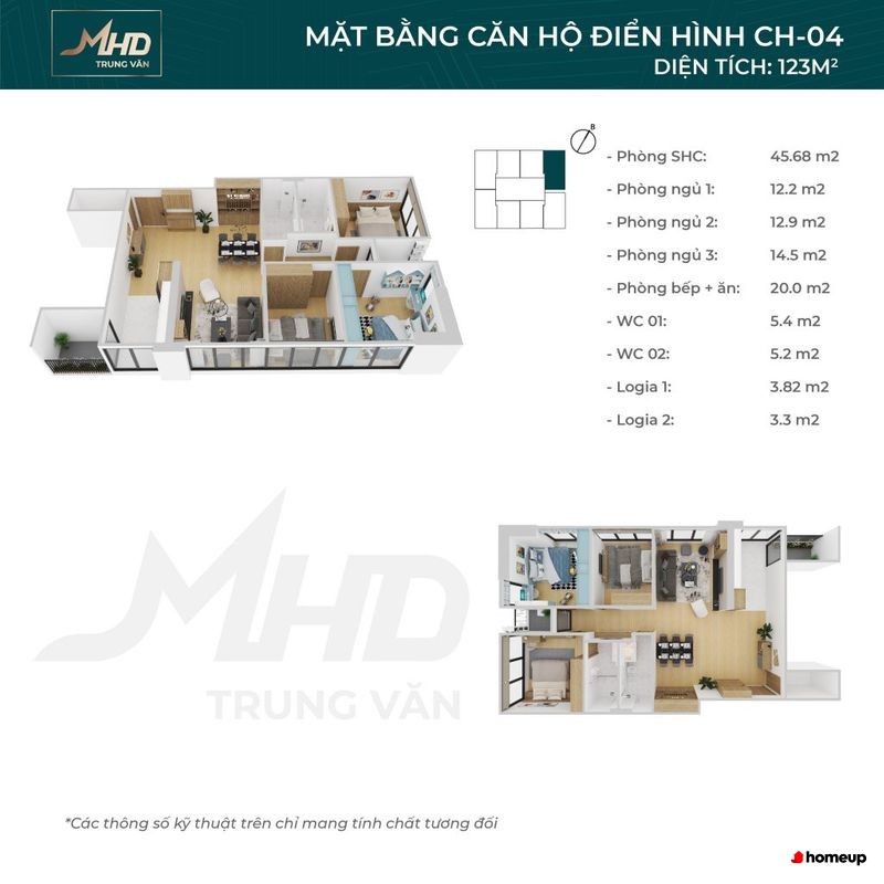 Dự án gồm 2 tòa tháp: 37 (khối khách sạn) và 39 (khối chung cư) cao tầng hiện đại Các căn hộ tại MHD Trung Văn được bố trí hợp lý với số lượng 8 căn/sàn, đi kèm 7 thang máy, đảm bảo mật độ sử dụng thoải mái. Căn hộ có 2–3 phòng ngủ, diện tích đa dạng từ 105,5m2 - 136m2, đặc biệt có loại căn hộ 3+1 phòng ngủ thiết kế góc, sở hữu không gian rộng rãi và nhiều ban công. Ngoài ra, khối căn hộ khách sạn có diện tích từ 48,5m2 - 74m2, phù hợp cho các chuyên gia hoặc hộ gia đình nhỏ. Tất cả đều được thiết kế đón gió, ánh sáng tự nhiên, tăng tính kết nối giữa không gian bên trong và ngoài trời.