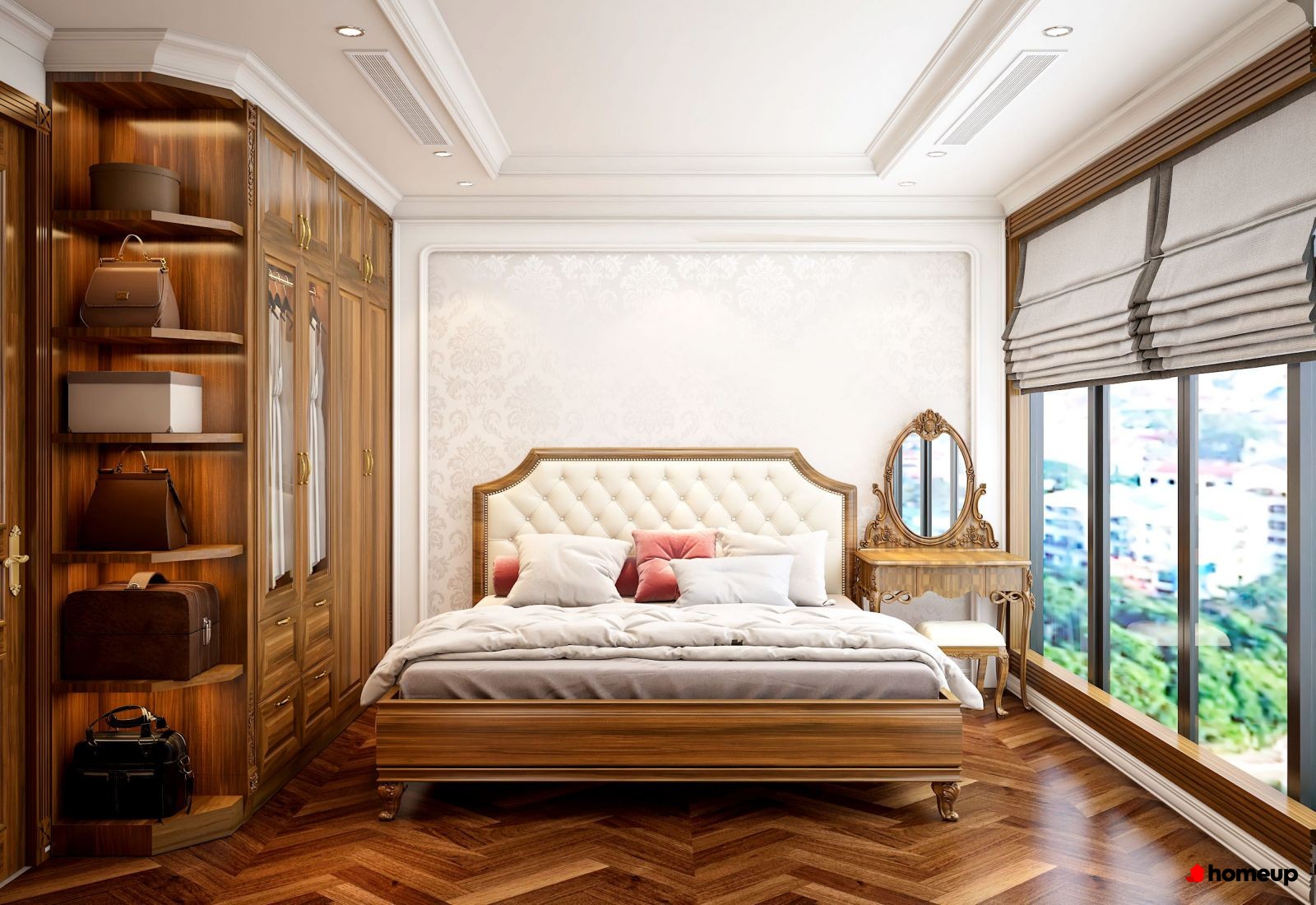 Phòng ngủ ấm áp, có view nhìn ra trung tâm thành phố nhộn nhịp Loại căn hộ MHD Trung Văn