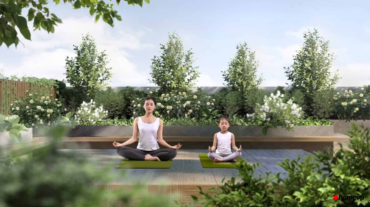 Khu vườn thiền nhiều cây xanh, giúp điều hòa hơi thở và giảm stress cuối ngày Hệ thống thể thao, giải trí nội khu bao gồm: bể bơi trong nhà và ngoài trời, phòng gym, yoga, sân thể thao đa năng, đáp ứng nhu cầu rèn luyện sức khỏe của cư dân mọi lứa tuổi. Với diện tích bể bơi rộng và trang thiết bị hiện đại, cư dân có thể tận hưởng những trải nghiệm như tại các resort cao cấp.