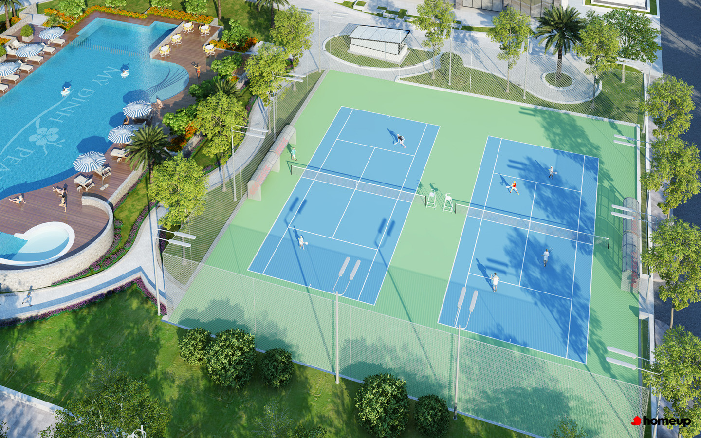 Sân chơi tennis ngay trong khuôn viên tòa nhà Dự án có mất độ xây dựng thấp, chỉ 18% diện tích xây dựng, tòa nhà dành nhiều diện tích còn lại để cho cây xanh, công viên 4 mùa, vườn treo, đường đi bộ, sân chơi bóng mini dành riêng trẻ em.... nhằm kiến tạo một môi trường xanh, đáng sống cho cư dân ngay giữa lòng thủ đô.
