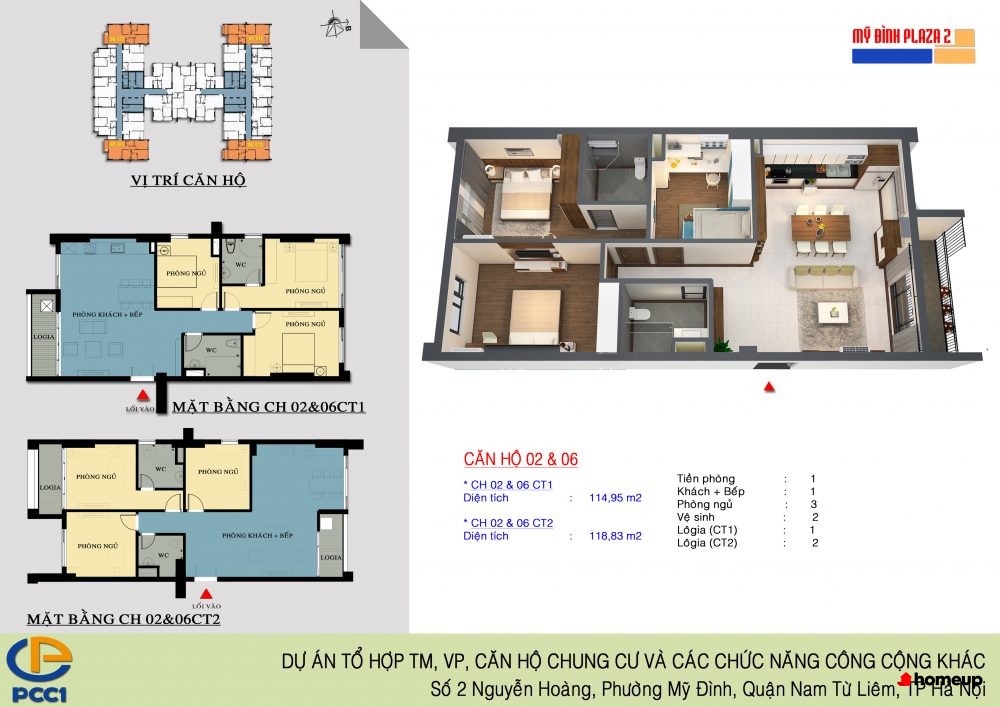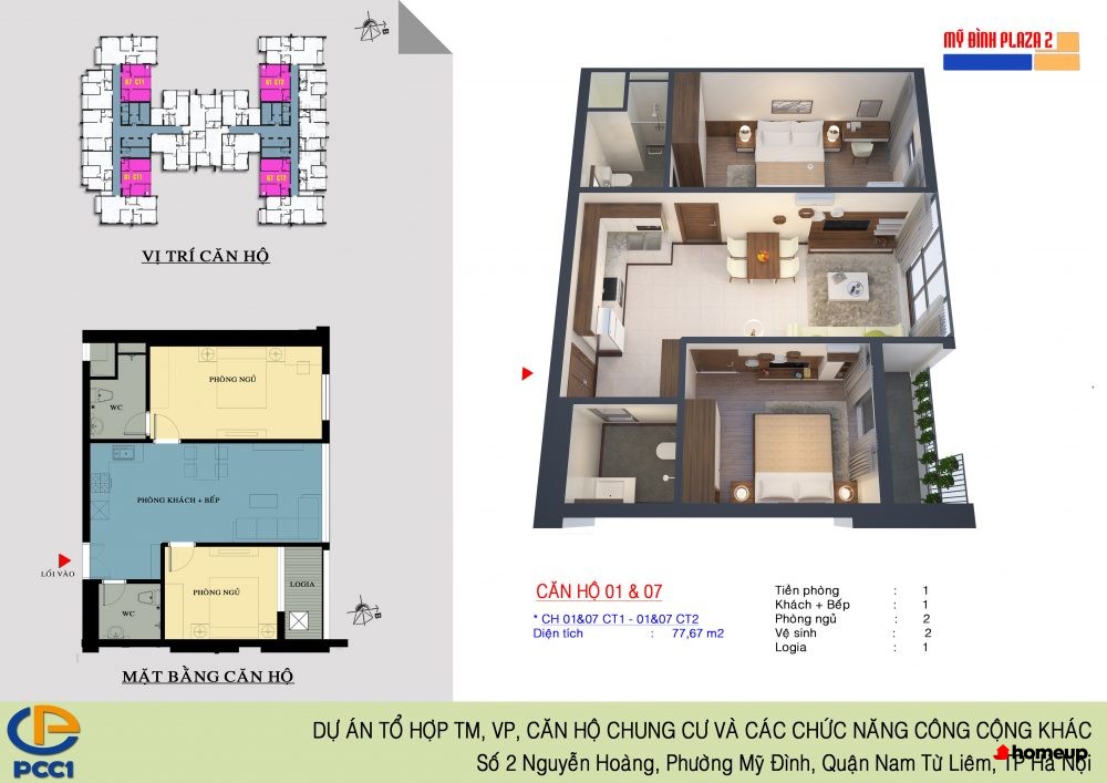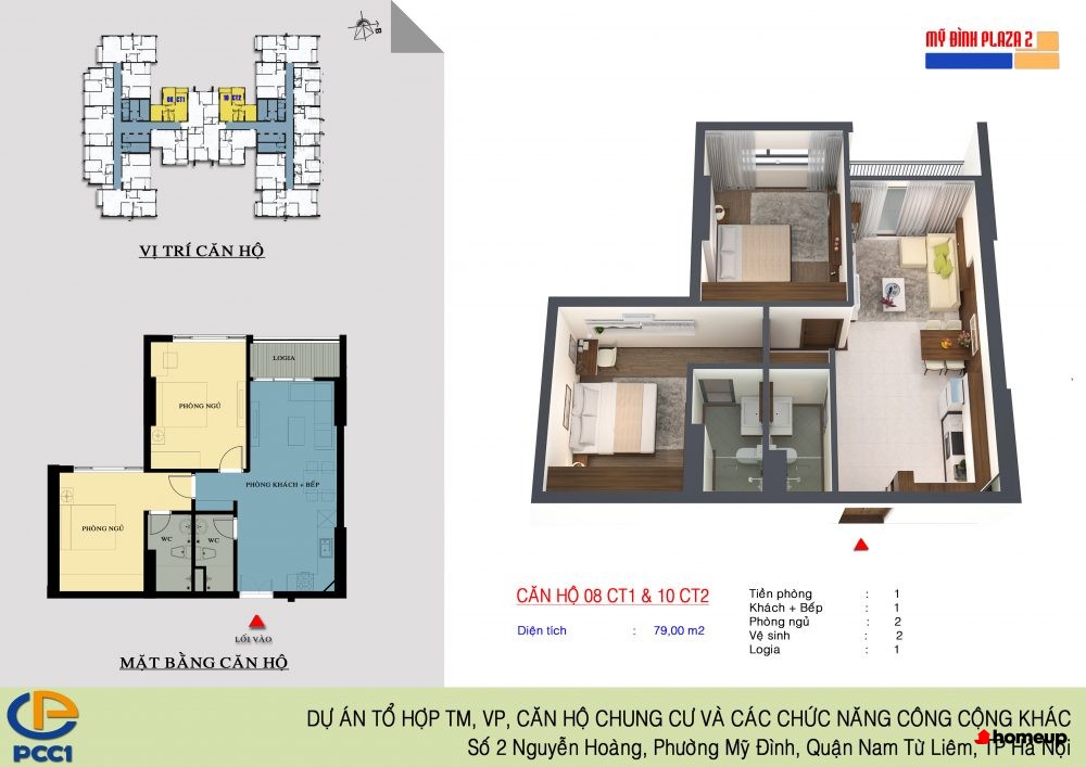Tòa nhà Mỹ Đình Plaza 2 gồm một tòa tháp cao 28 tầng hiện đại Các căn hộ thiết kế thông minh với diện tích linh hoạt từ 75–114m2, phù hợp cho nhu cầu của cả gia đình trẻ lẫn hộ gia đình đa thế hệ. Mỗi căn hộ bố trí 2–3 phòng ngủ, tối ưu hóa công năng, đảm bảo sự tiện nghi và riêng tư. Hệ thống logia, cửa kính rộng, cùng ban công thoáng đãng mang đến không gian luôn ngập tràn ánh sáng tự nhiên và sự gắn kết với thiên nhiên.