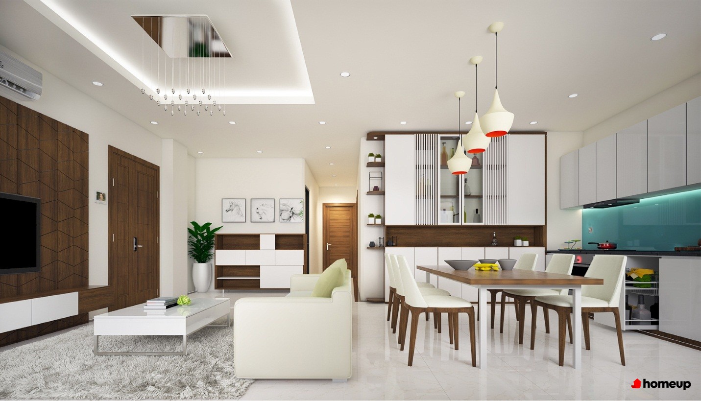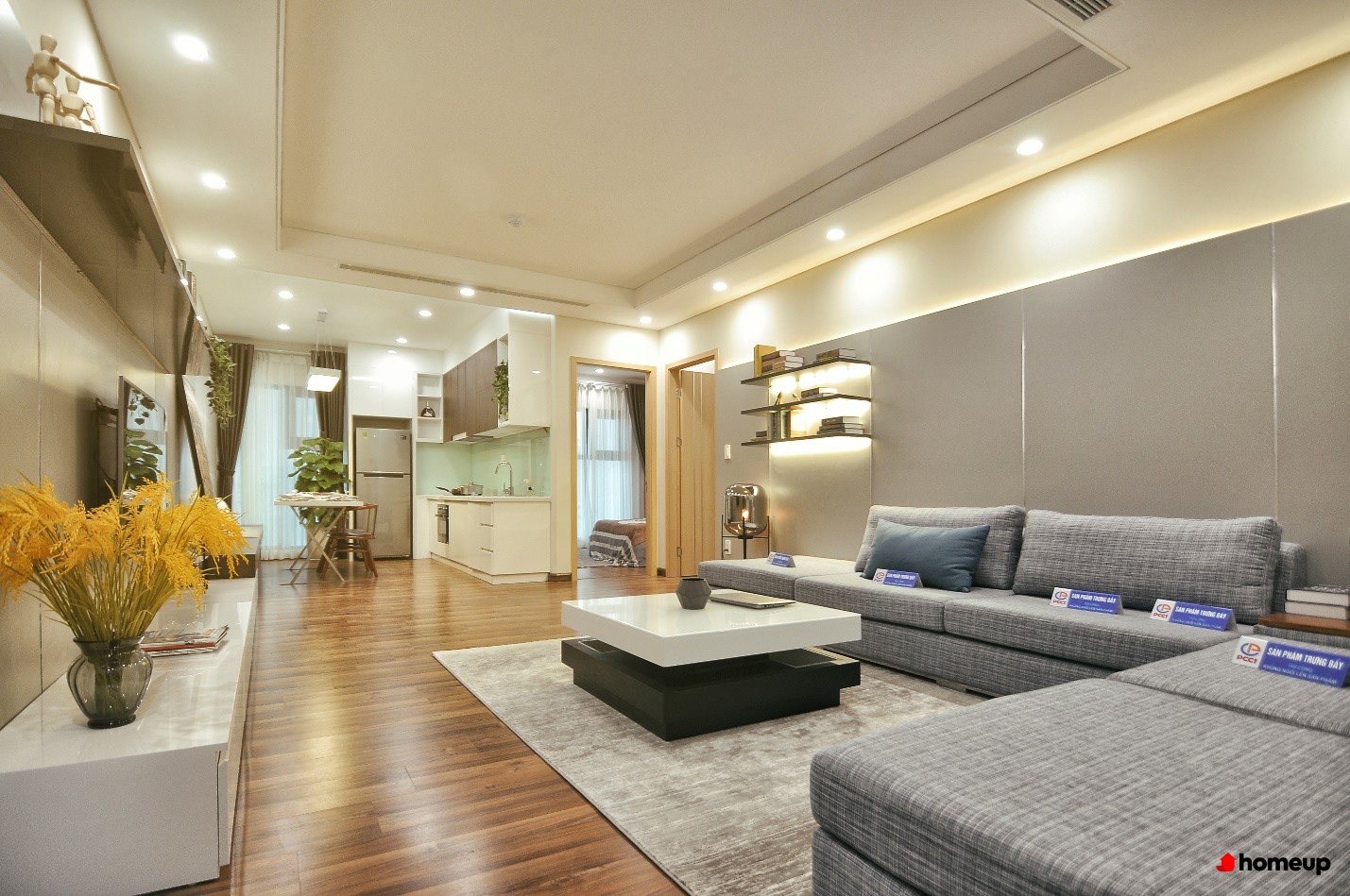 Thiết kế căn hộ thông thoáng, tạo cảm giác mát mẻ và gần gũi trong sinh hoạt hằng ngày Về nội thất bàn giao, chủ đầu tư chú trọng lựa chọn các trang thiết bị chất lượng cao, từ sàn gỗ, trần thạch cao, hệ thống đèn chiếu sáng đến thiết bị vệ sinh đồng bộ. Các chi tiết được hoàn thiện tinh tế, mang phong cách hiện đại, sẵn sàng để cư dân dọn về sinh sống.