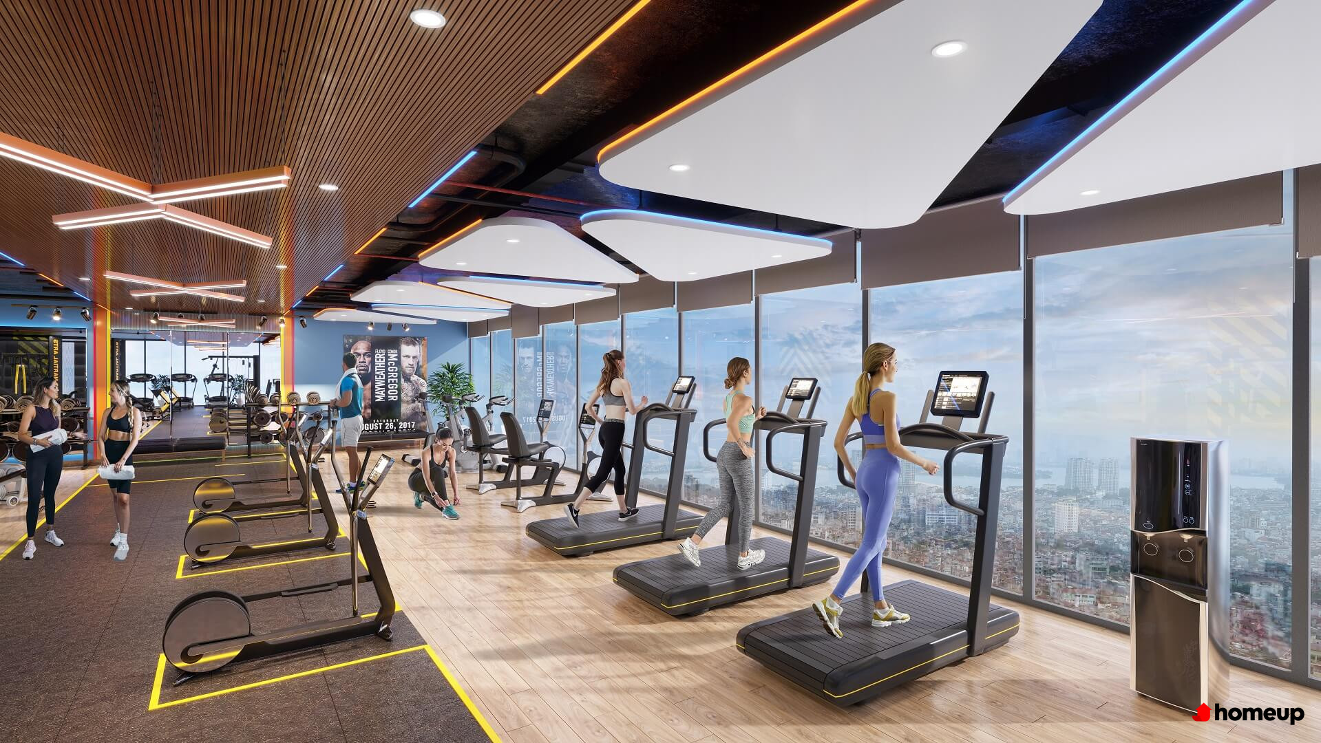 Phòng tập gym hiện đại, giúp cư dân rèn luyện sức khỏe mỗi ngày Tòa nhà sở hữu 5 tầng hầm với tổng diện tích hơn 10.000 m2, làm bãi đỗ xe thông minh. Tất cả thang máy trong tòa nhà là loại tốc độ cao, phân chia riêng biệt giữa khu căn hộ, văn phòng thương mại riêng biệt, đảm bảo an toàn và riêng tư cho cư dân sinh sống