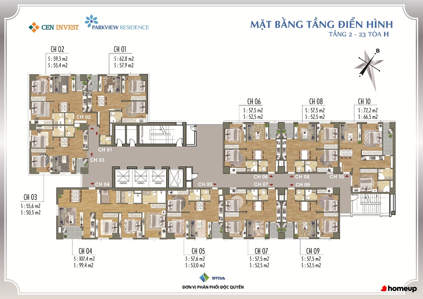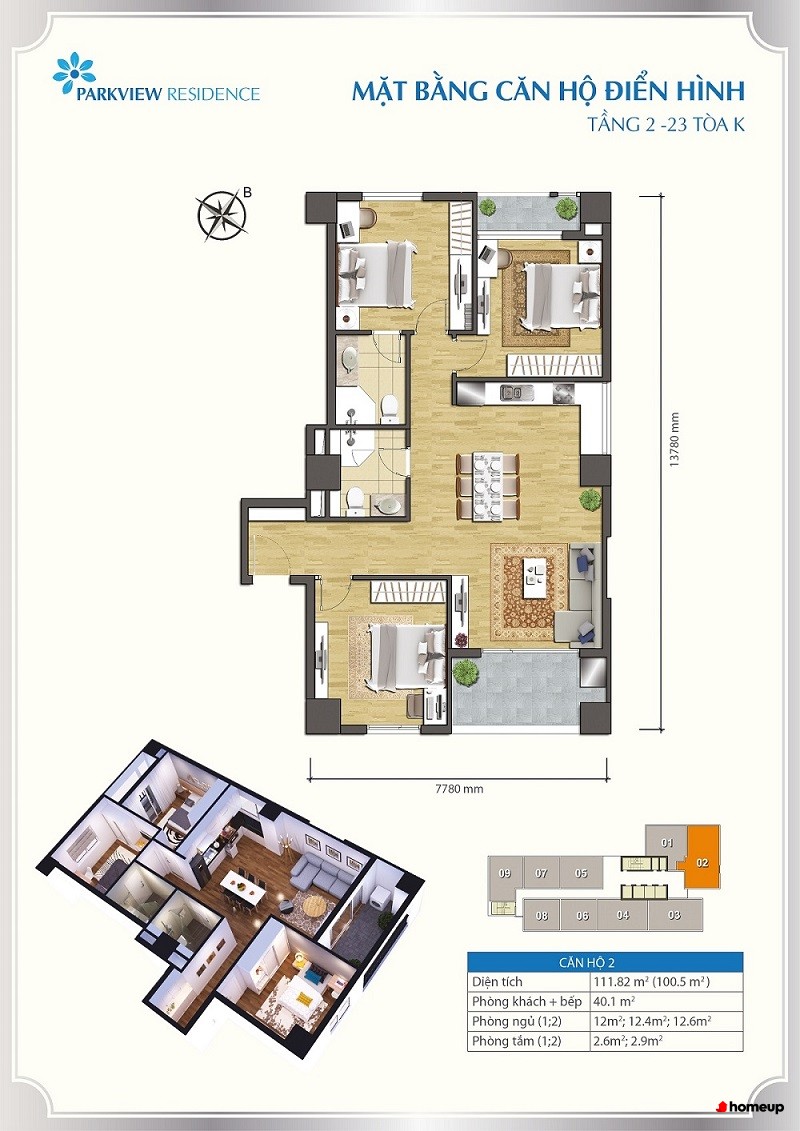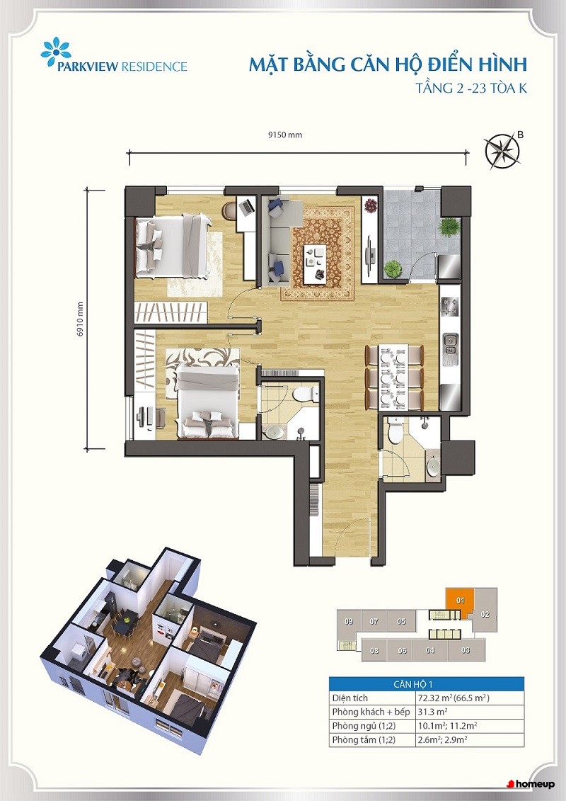Thiết kế căn hộ chung cư Park View Residence sang trọng và hiện đại Loại căn hộ Park View Residence