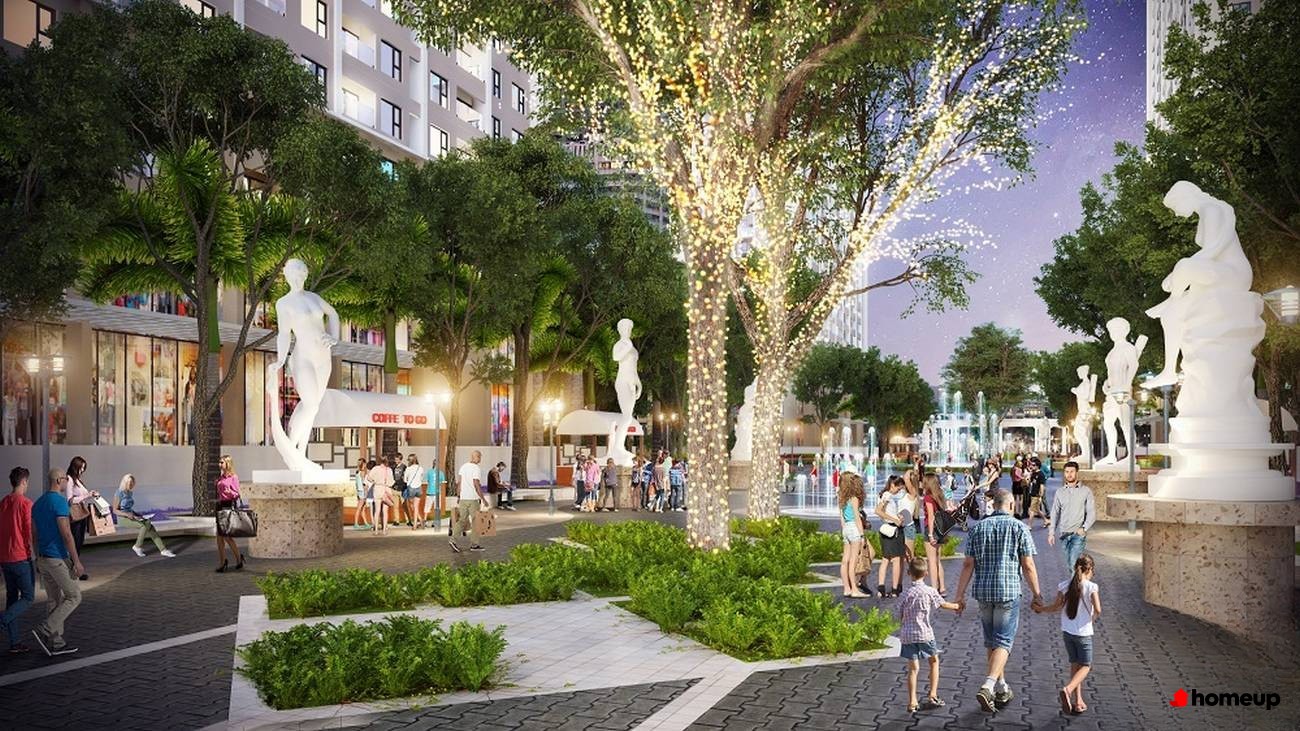 Bãi đỗ xe rộng rãi, được thiết kế thông minh tránh gây tắc nghẽn trong giờ cao điểm Không gian xanh và giao thông nội bộ rộng rãi lên đến 25.831 m2 giúp cư dân tận hưởng môi trường trong lành, yên tĩnh giữa lòng đô thị sầm uất. Khu vườn dạo bộ, lối đi nội khu và các khoảng sân rộng tạo điều kiện cho hoạt động thể chất và thư giãn mỗi ngày.