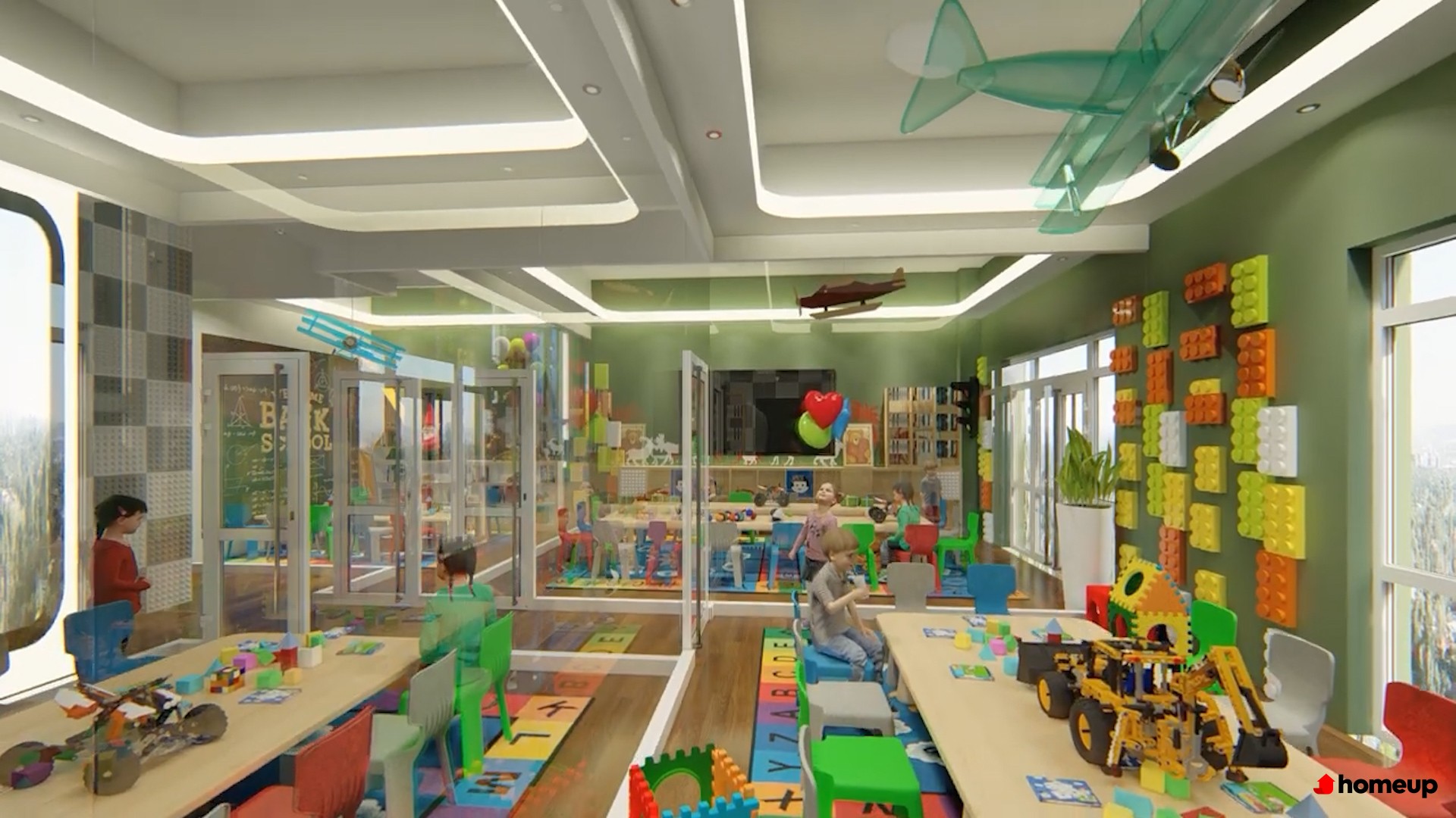 Phòng gym rộng rãi, được trang bị thiết bị tập luyện đầy đủ Khu vui chơi ngoài trời và trường mầm non quốc tế ngay trong dự án, diện tích 500 m2, đảm bảo an toàn và thuận tiện cho trẻ nhỏ. Không gian xanh xung quanh tạo môi trường học tập, vui chơi lý tưởng.