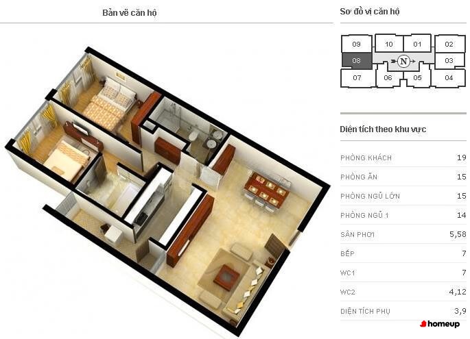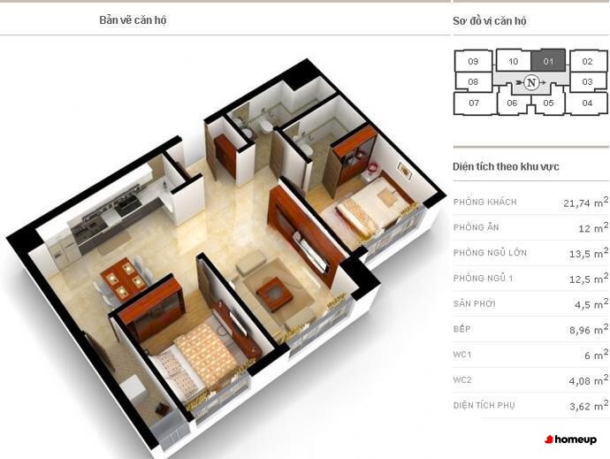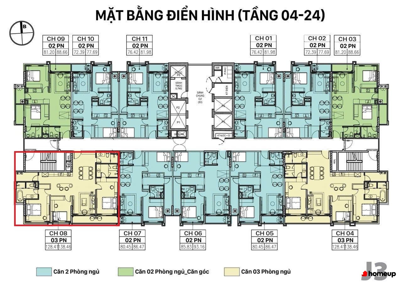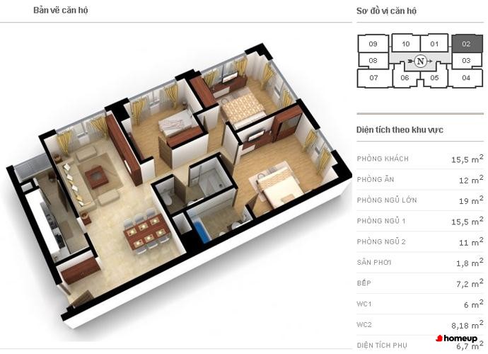 Dự án tòa chung cư Richland Southern cao 19 tầng Các căn hộ tại Richland Southern được thiết kế tối ưu với diện tích dao động từ 86.9 m2 đến 123.2 m2, chia thành hai loại chính. Căn hộ 2 phòng ngủ có diện tích từ 86.9 – 94.8 m2, trong khi căn hộ 3 phòng ngủ rộng từ 100 – 123.2 m2, phù hợp với nhiều nhu cầu sử dụng: từ gia đình trẻ đến hộ gia đình đa thế hệ hoặc chuyên gia nước ngoài. Mỗi tầng chỉ bố trí 8 căn, đảm bảo sự riêng tư, yên tĩnh và thông thoáng với ban công rộng cùng hệ thống cửa sổ lớn đón ánh sáng tự nhiên.