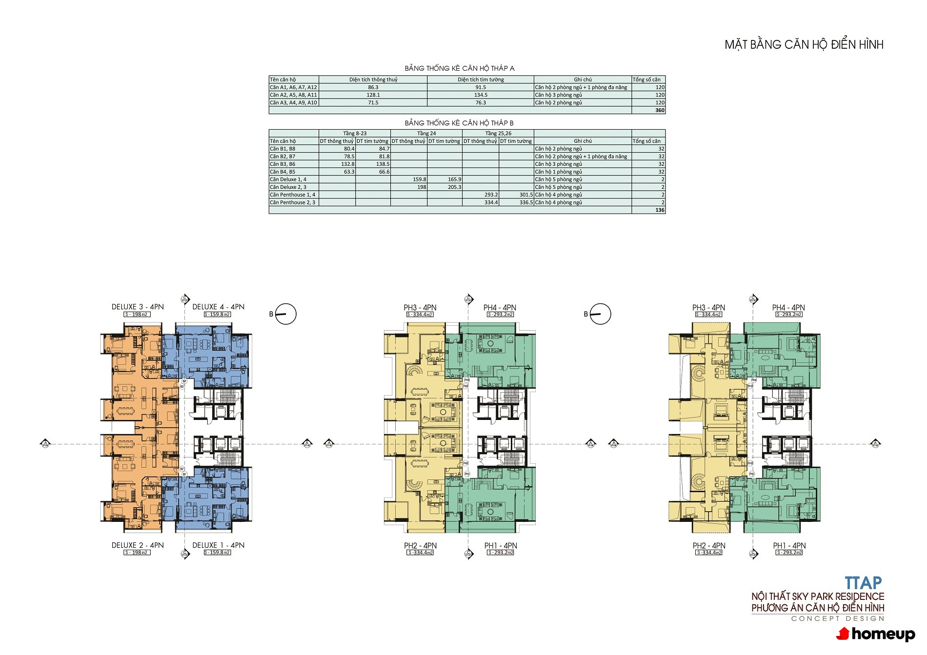 Căn hộ Penthouse: 293m2 - 334m2.