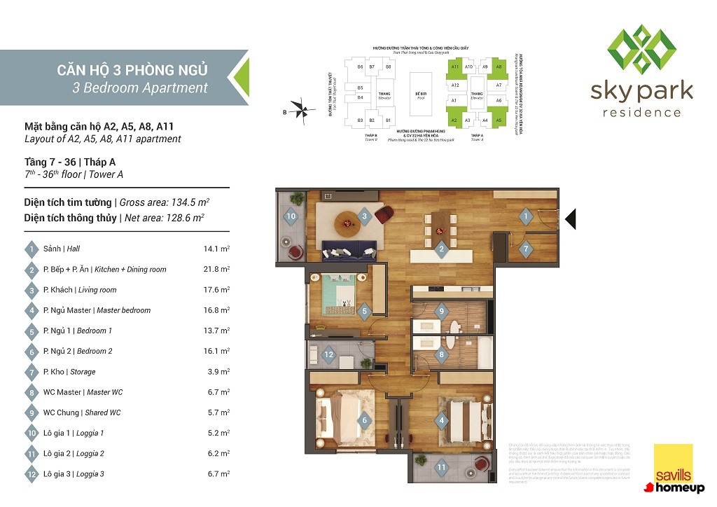 Căn hộ 3 phòng ngủ: 128m2 - 133m2