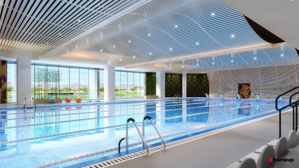 Bể bơi thiết kế rộng rãi, phục vụ cư dân bơi lội quanh năm