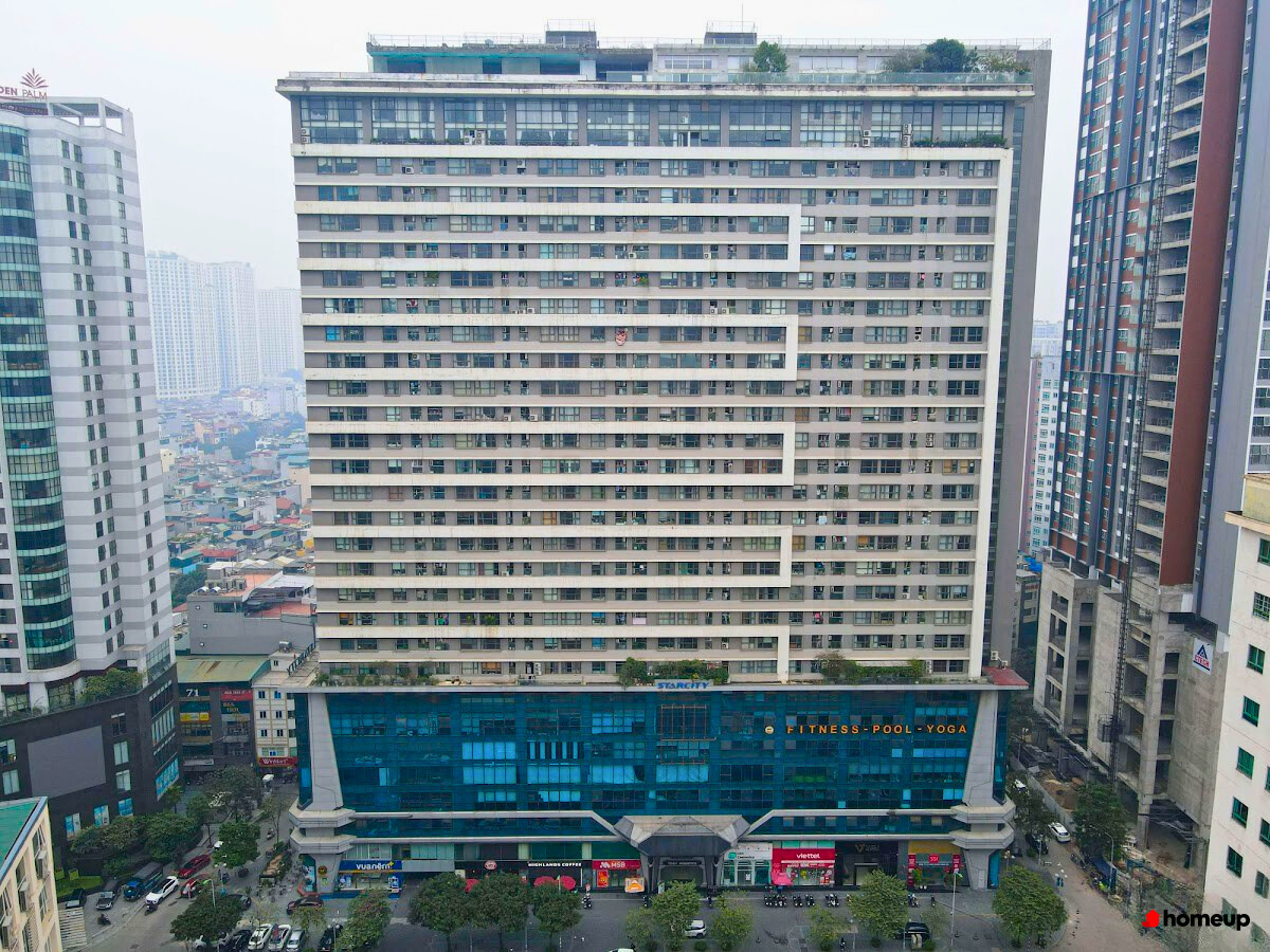 Tòa nhà Star City được xây dựng dựa theo phong cách châu Âu tinh tế, với chỉ1 tòa tháp cao 27 tầng nổi và 3 tầng hầm, trong đó khối đế ( từ tầng 1 đến 5) là trung tâm thương mại và các tiện ích dịch vụ, còn từ tầng 6 trở lên là khu căn hộ cao cấp. Thiết kế mặt bằng các tầng được tối ưu theo nguyên tắc thông thoáng và tiện nghi, mỗi sàn có 8 - 10 căn hộ, đảm bảo không gian riêng tư và yên tĩnh. Các căn hộ có diện tích đa dạng từ 63m² đến hơn 153m², phù hợp với nhu cầu của gia đình trẻ, hộ gia đình đa thế hệ hoặc nhà đầu tư cho thuê.