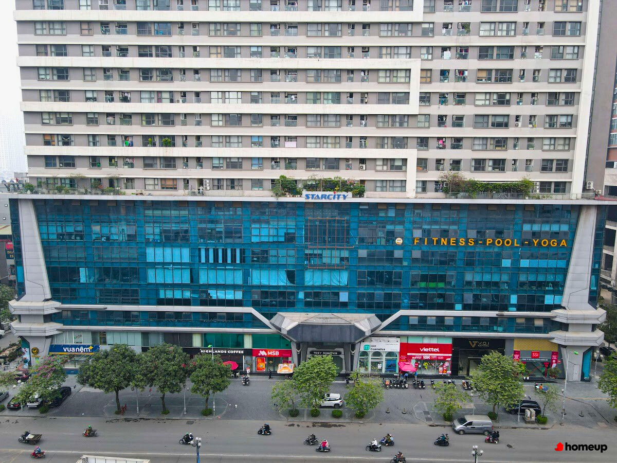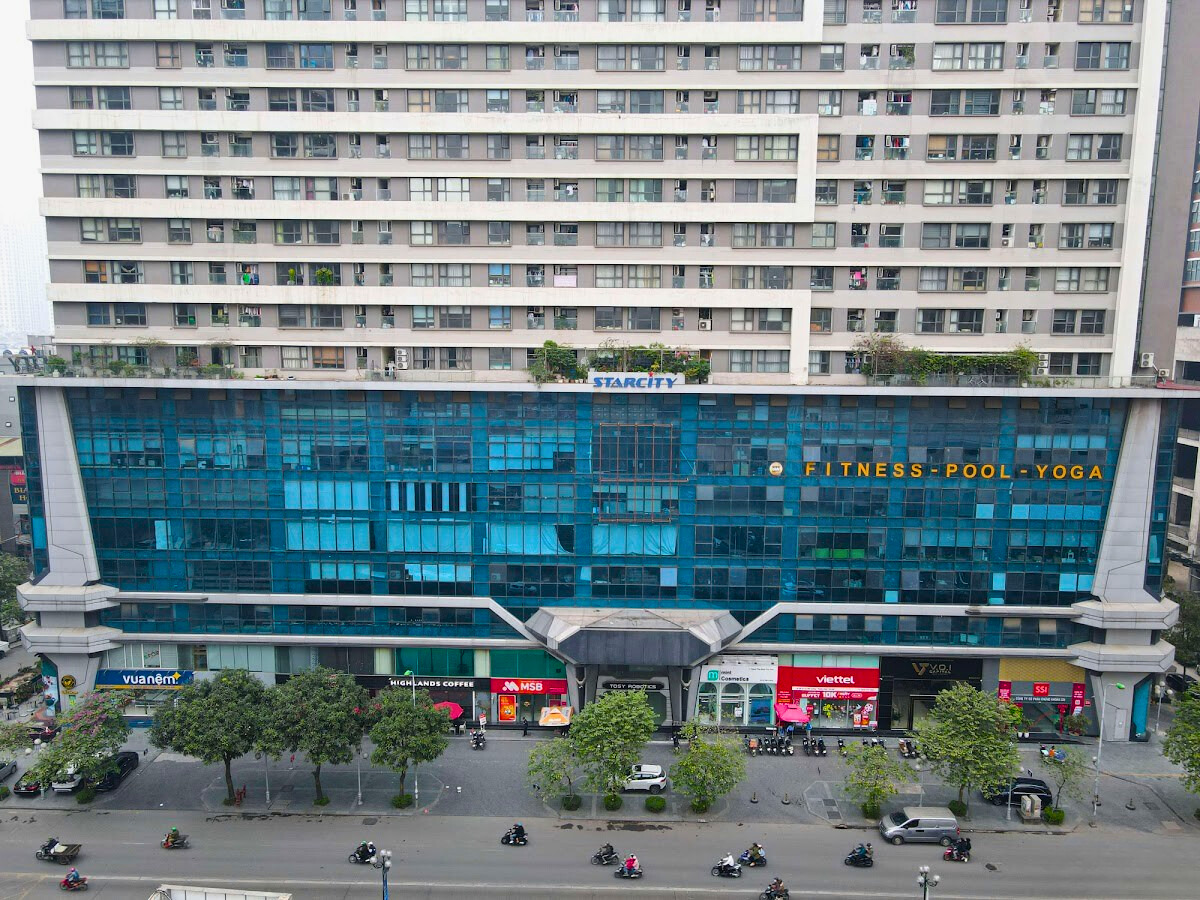 Từ tầng 1 đến tầng 5 chung cư Star City xây dựng trung tâm thương mại quy mô lớn, bao gồm khu trung tâm mua sắm, vua nệm, nhà hàng, ngân hàng BIDV, MSB, cafe Highland.... nhằm phục nhu cầu vui chơi, ăn uống của cư dân và khu vực lân cận