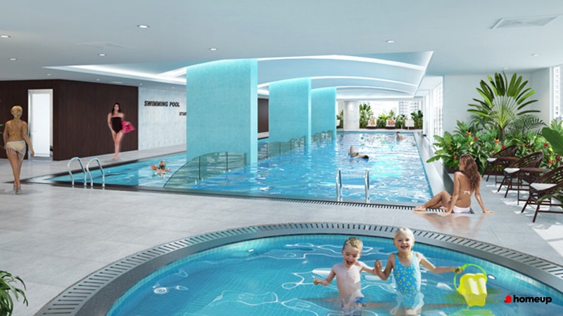 Chung cư Star Tower 283 Khương Trung bố trí bể bơi 4 mùa trong nhà rộng rãi, có diện tích gần 300 m2, mang lại không gian thư giãn và rèn luyện sức khỏe quanh năm cho cư dân.