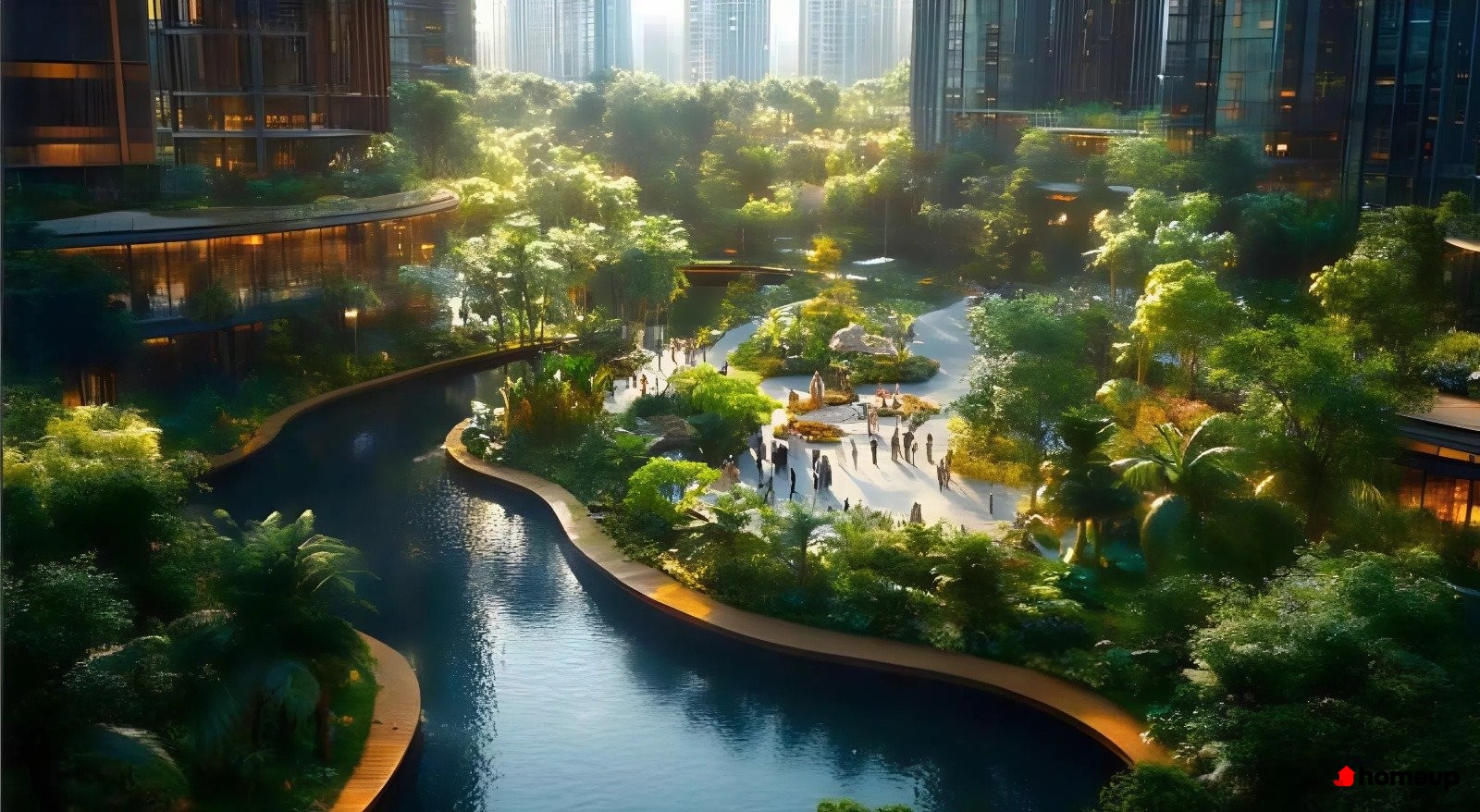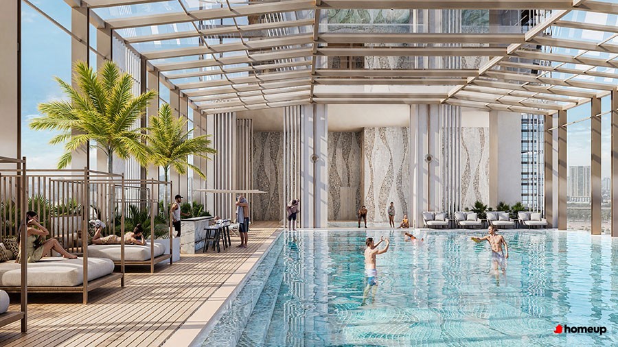 Lối dạo bộ nội khu dài gần 1 km uốn quanh các tiểu cảnh nước sinh động Cư dân có thể tận hưởng cuộc sống năng động và khỏe mạnh mỗi ngày với phòng gym trang bị máy móc cao cấp, khu spa - sauna thư giãn chuyên biệt, và các sky lounge hay clubhouse sang trọng phục vụ nhu cầu gặp gỡ, thư giãn và kết nối cộng đồng.