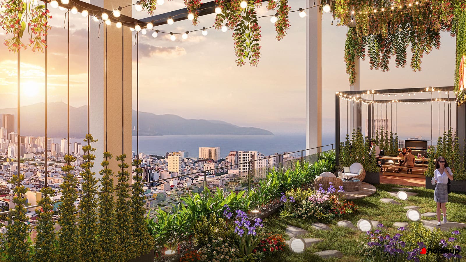 Sảnh đón khách cao 14 mét, đạt chuẩn quốc tế tại Sun Feliza Suites Tiện ích ngoại khu