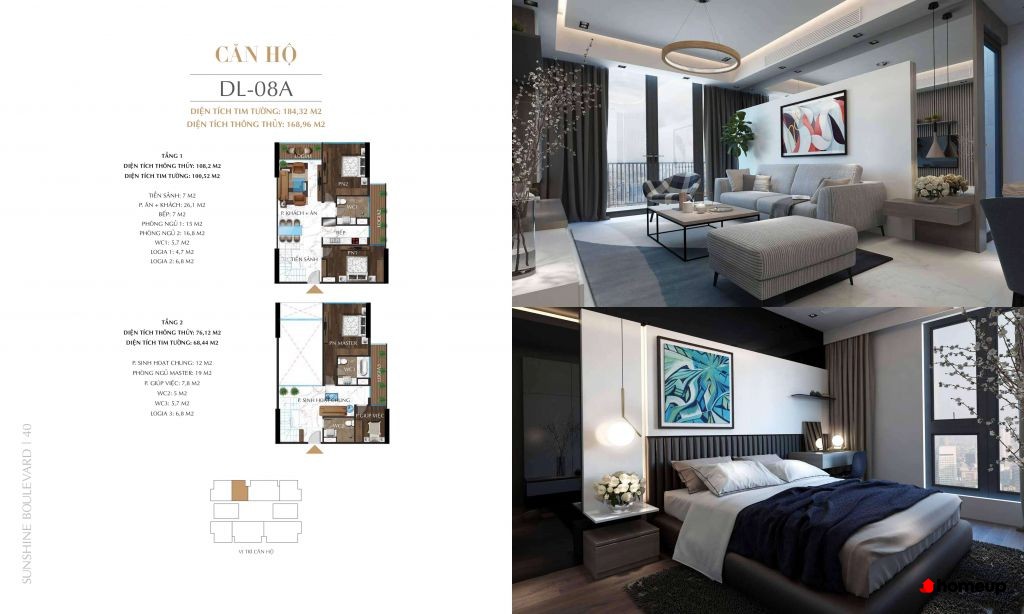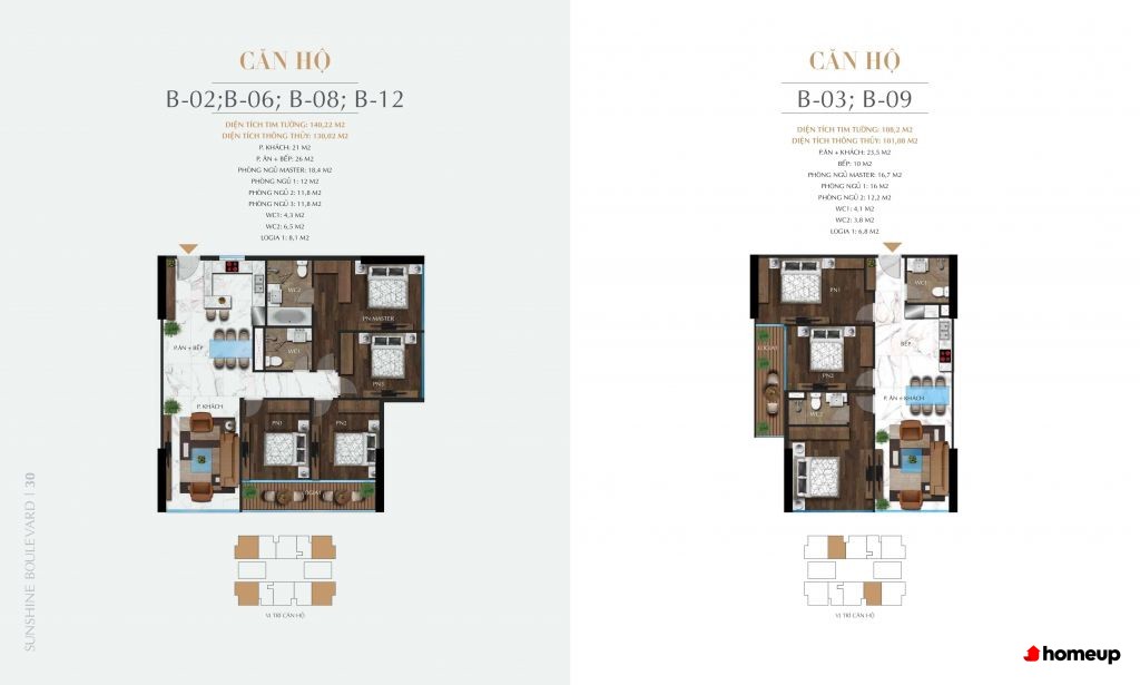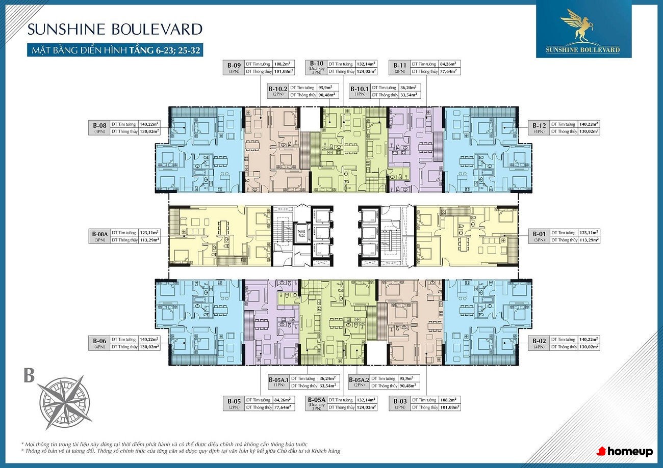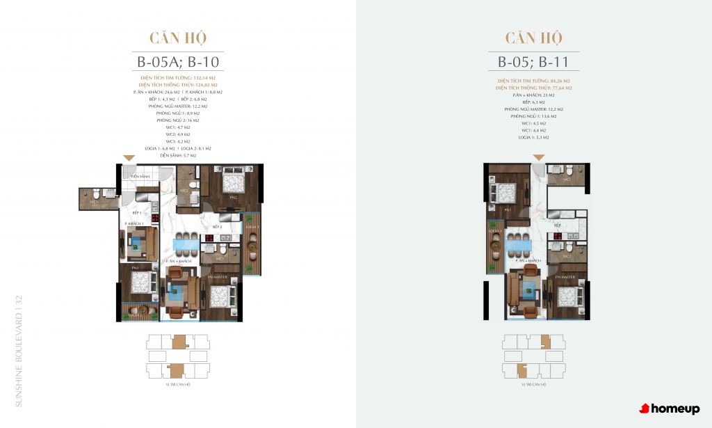 Tòa nhà Sunshine Boulevard cao 40 tầng hiện đại, mang phong cách châu Âu Các căn hộ Sunshine Boulevard có diện tích đa dạng từ 76 – 114 m2, phù hợp nhiều nhu cầu sử dụng. Trong đó, căn hộ loại D và E có 2 phòng ngủ (76 – 89 m2), tối ưu cho gia đình trẻ; còn căn hộ loại A, B, C với 3 phòng ngủ (từ 101 – 114 m2) rộng rãi, lý tưởng cho hộ gia đình đa thế hệ. Thiết kế thông minh giúp từng không gian sinh hoạt đều thoáng sáng, đón gió tự nhiên và tận dụng tối đa diện tích.