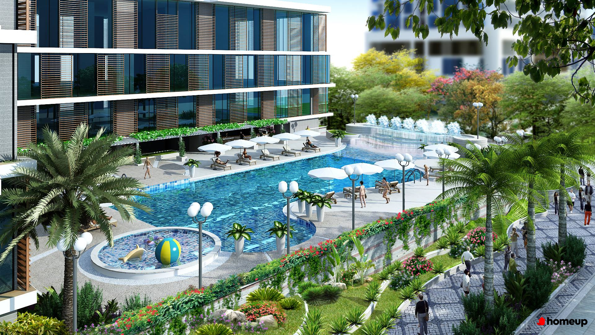 Bể bơi hiện đại tại chung cư Thăng Long Number One Không gian sống tại đây còn được làm giàu nhờ khu vườn dạo bộ, đường dạo sinh thái và khu sinh hoạt cộng đồng, tạo nên môi trường sống xanh - sạch - văn minh. Cư dân có thể tản bộ, thư giãn, hoặc tổ chức sự kiện gia đình, hoạt động cộng đồng ngay tại nội khu.