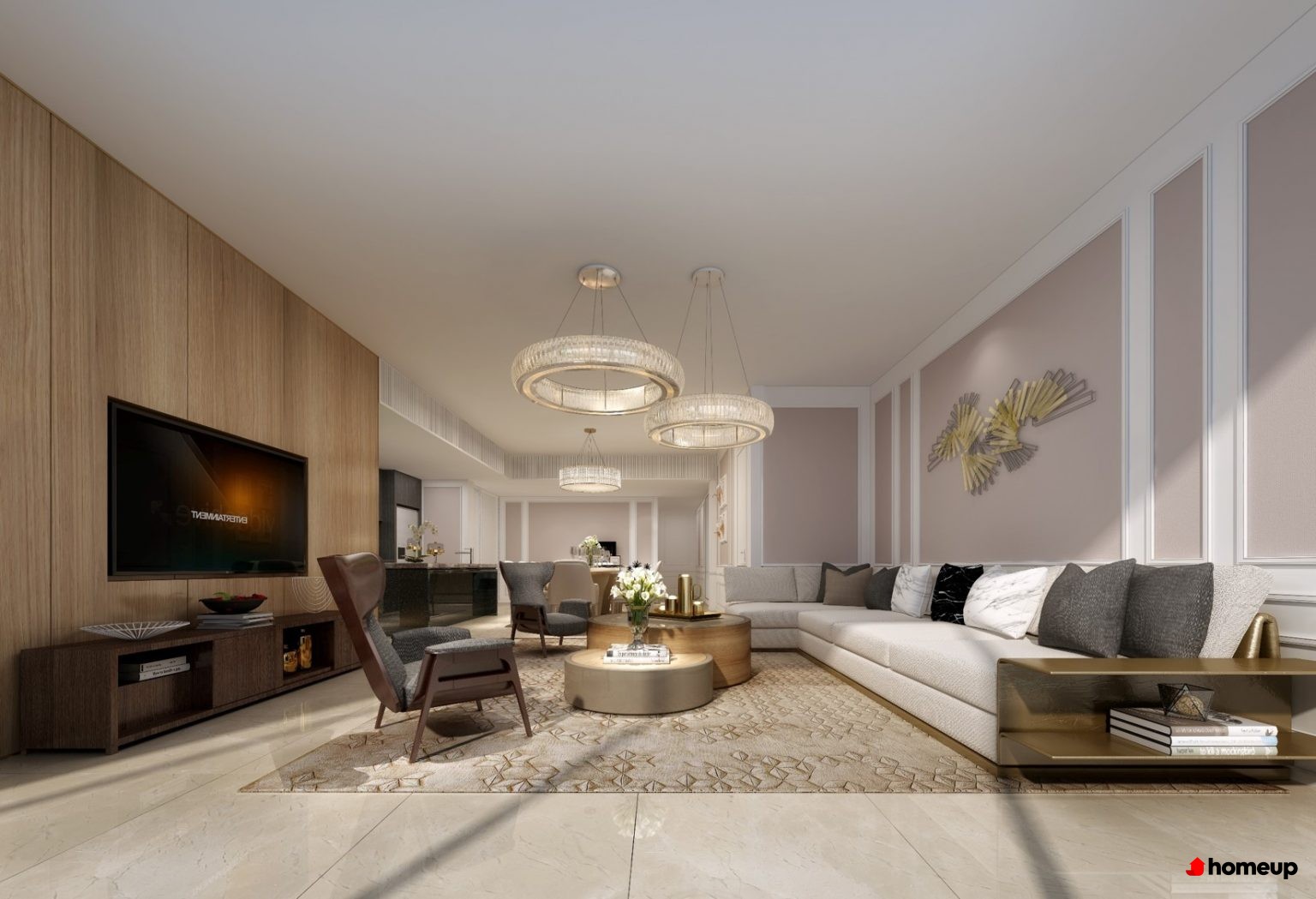 Phòng khách căn hộ thiết kế rộng rãi, bố trí tạo cảm giác sang trọng và hiện đại
