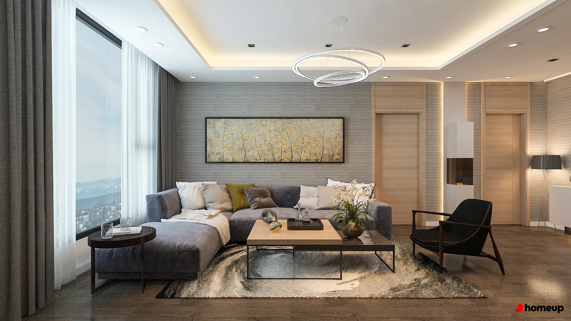 Phòng khách tại chung cư The Golden Armor Nội thất bàn giao được hoàn thiện cao cấp với sàn gỗ chất lượng, hệ thống cửa chống cháy, trần thạch cao, đèn chiếu sáng hiện đại. Khu bếp trang bị tủ bếp, bồn rửa, mặt đá granite và thiết bị bếp từ; phòng tắm lát gạch chống trơn, lắp sẵn thiết bị vệ sinh cao cấp. Hệ thống điều hòa âm trần và thiết bị điện được lắp đặt đồng bộ, tiện dụng.