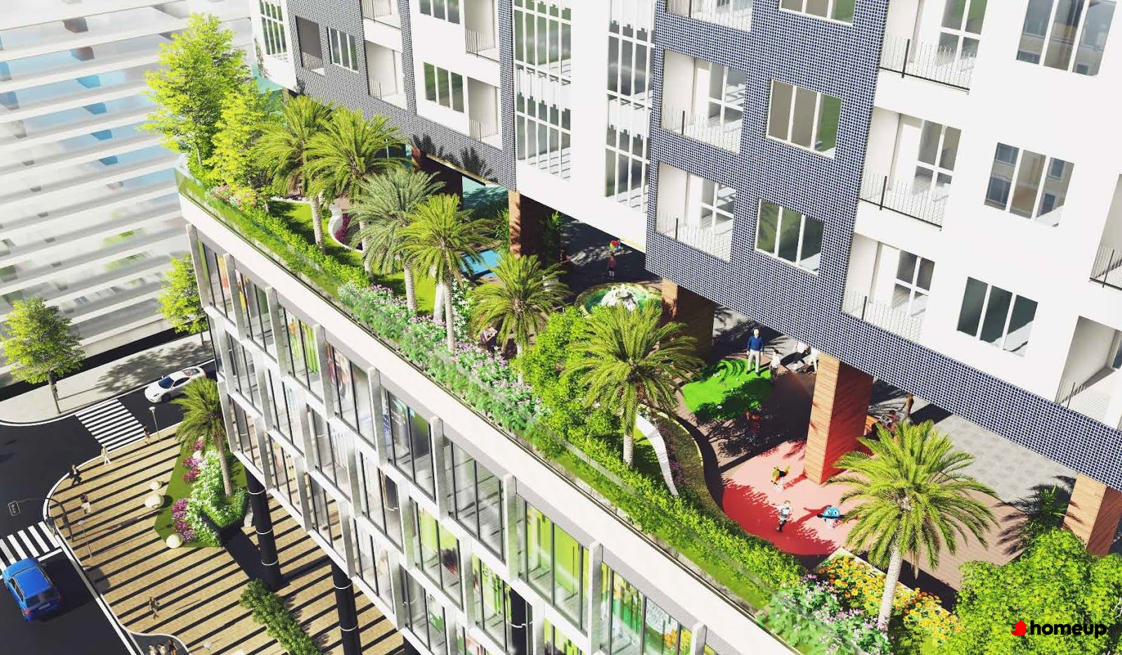 Vườn treo trên mái rộng hơn 500m² được thiết kế như một khu vườn trên cao giữa lòng phố, tạo không gian thư giãn xanh, đi dạo và tận hưởng hiếm thấy tại chung cư Hà Nội.