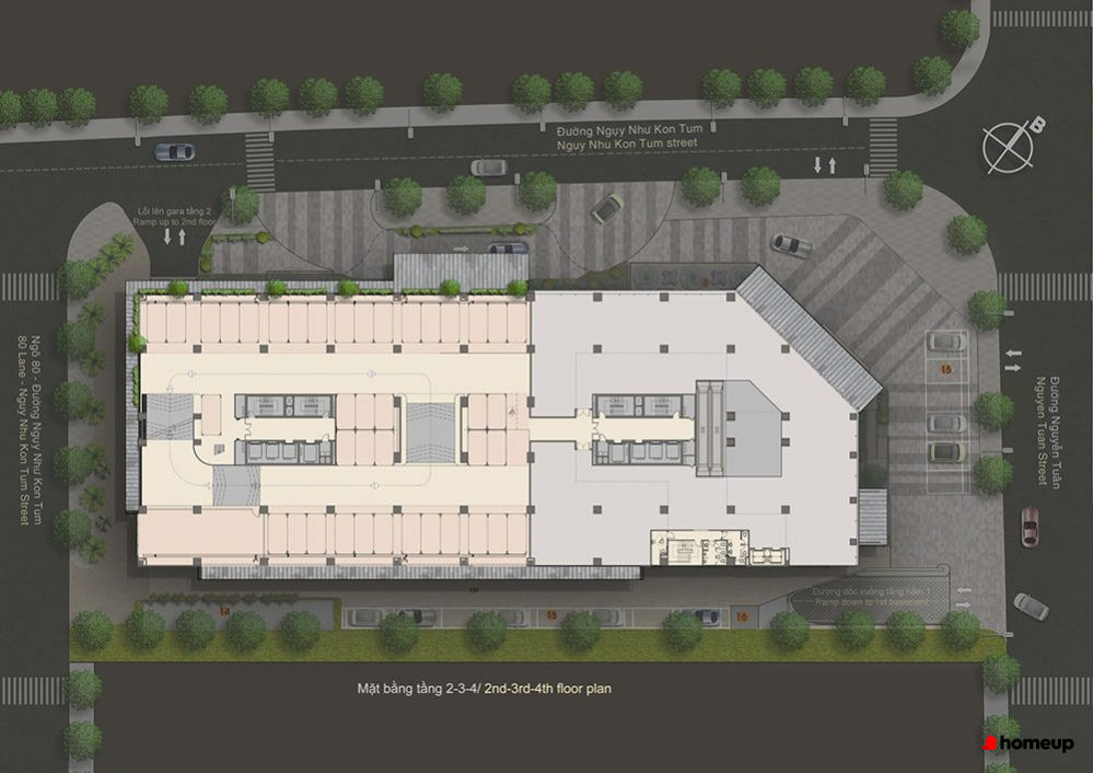 Khu để xe gồm 2 tầng hầm rộng rãi, với sức chứa lên tới 450 chỗ cho cả ô tô và xe máy, thiết kế khoa học, lối đi thông thoáng giúp cư dân dễ dàng di chuyển và đỗ xe an toàn.
