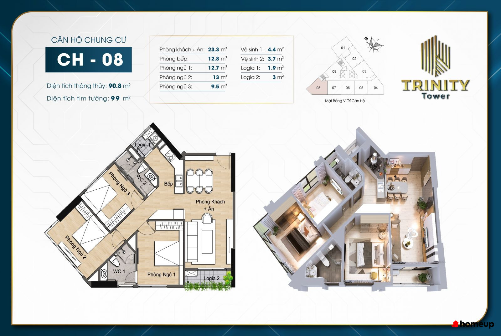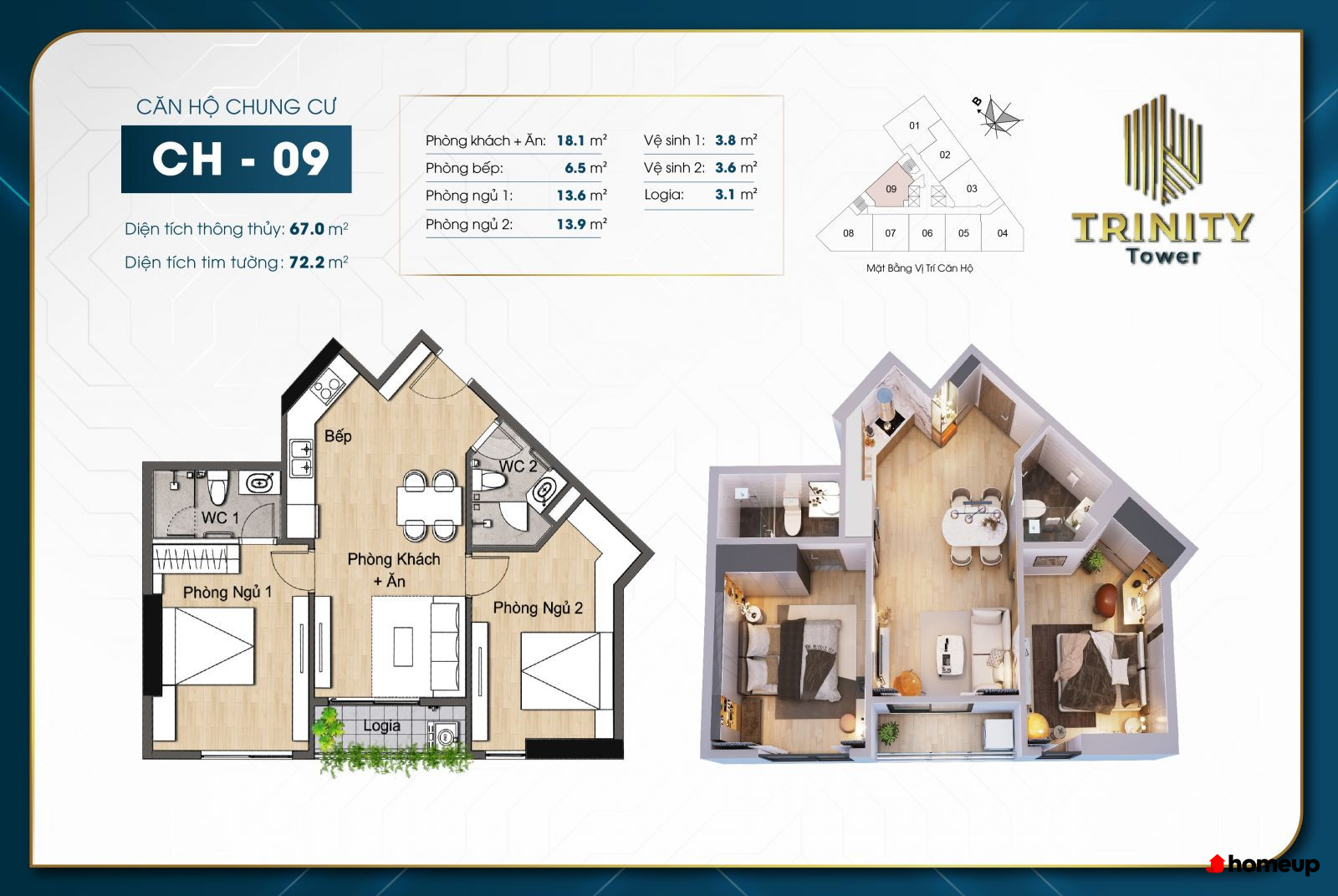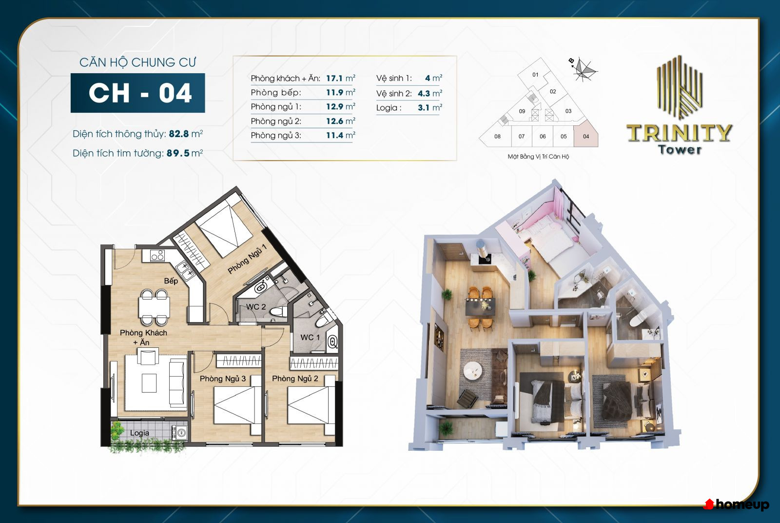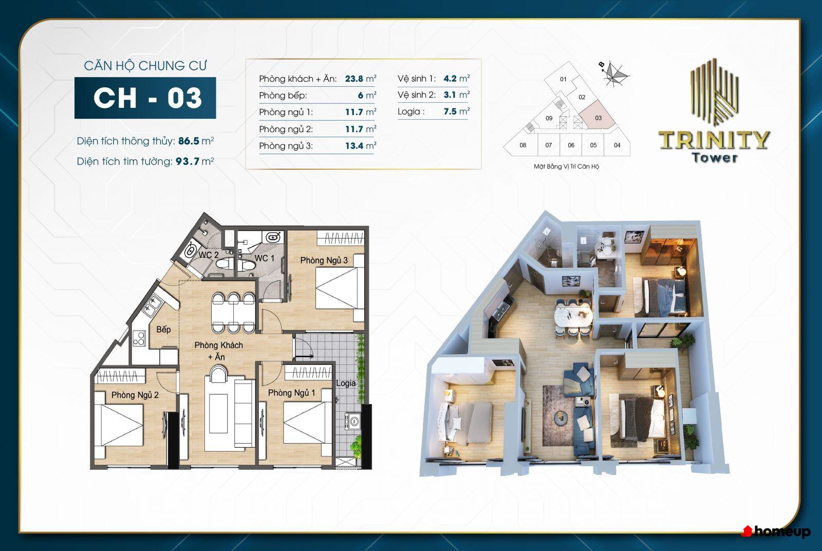 Trinity Tower là dự án tổ hợp căn hộ cao cấp kết hợp officetel và shophouse, tọa lạc tại số 145 Hồ Mễ Trì, phường Nhân Chính - trung tâm phát triển sôi động bậc nhất khu vực phía Tây Hà Nội. Dự án được thiết kế hiện đại, hài hòa giữa công năng và thẩm mỹ. Ưu điểm nổi bật của Trinity Tower là tích hợp đầy đủ tiện ích nội khu: bể bơi, gym, lounge cư dân, vườn cảnh quan… mang lại trải nghiệm sống tiện nghi và riêng tư. Thiết kế căn hộ tối ưu ánh sáng, không gian thoáng đãng, phù hợp với xu hướng sống đô thị hiện đại.