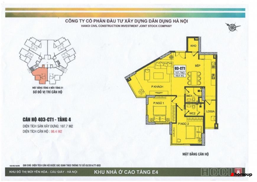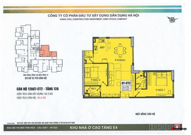 Chủ đầu tư:Công ty Cổ phần Đầu tư Xây dựng Dân dụng Hà Nội (HCCI)