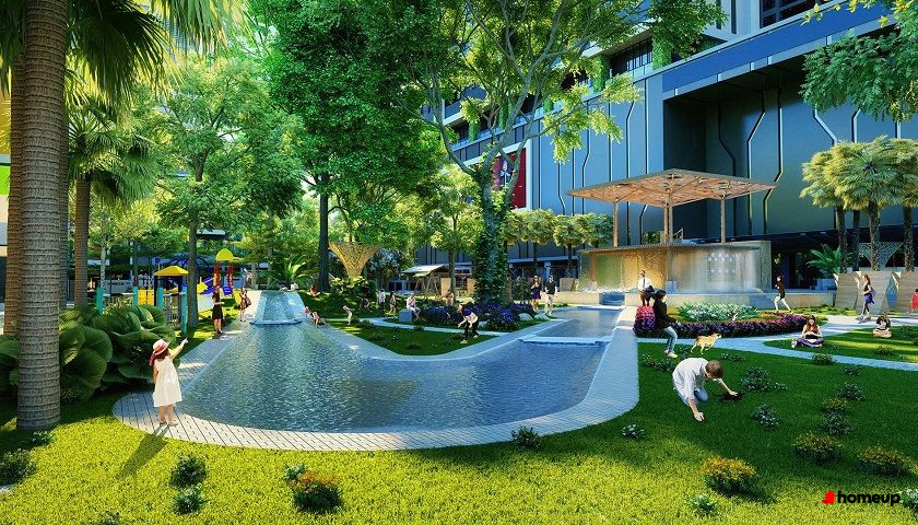 Khu sân vườn "xanh" tạo khoảng trống thư giãn và rèn luyện sức khỏe Dự án có 2 tầng hầm gửi xe liên thông, đảm bảo đủ chỗ cho cư dân và khách vãng lai, đi kèm hệ thống thang máy tốc độ cao, an ninh 24/7, máy phát điện dự phòng toàn khu, tạo nên một môi trường sống an toàn, tiện nghi và hiện đại mới.